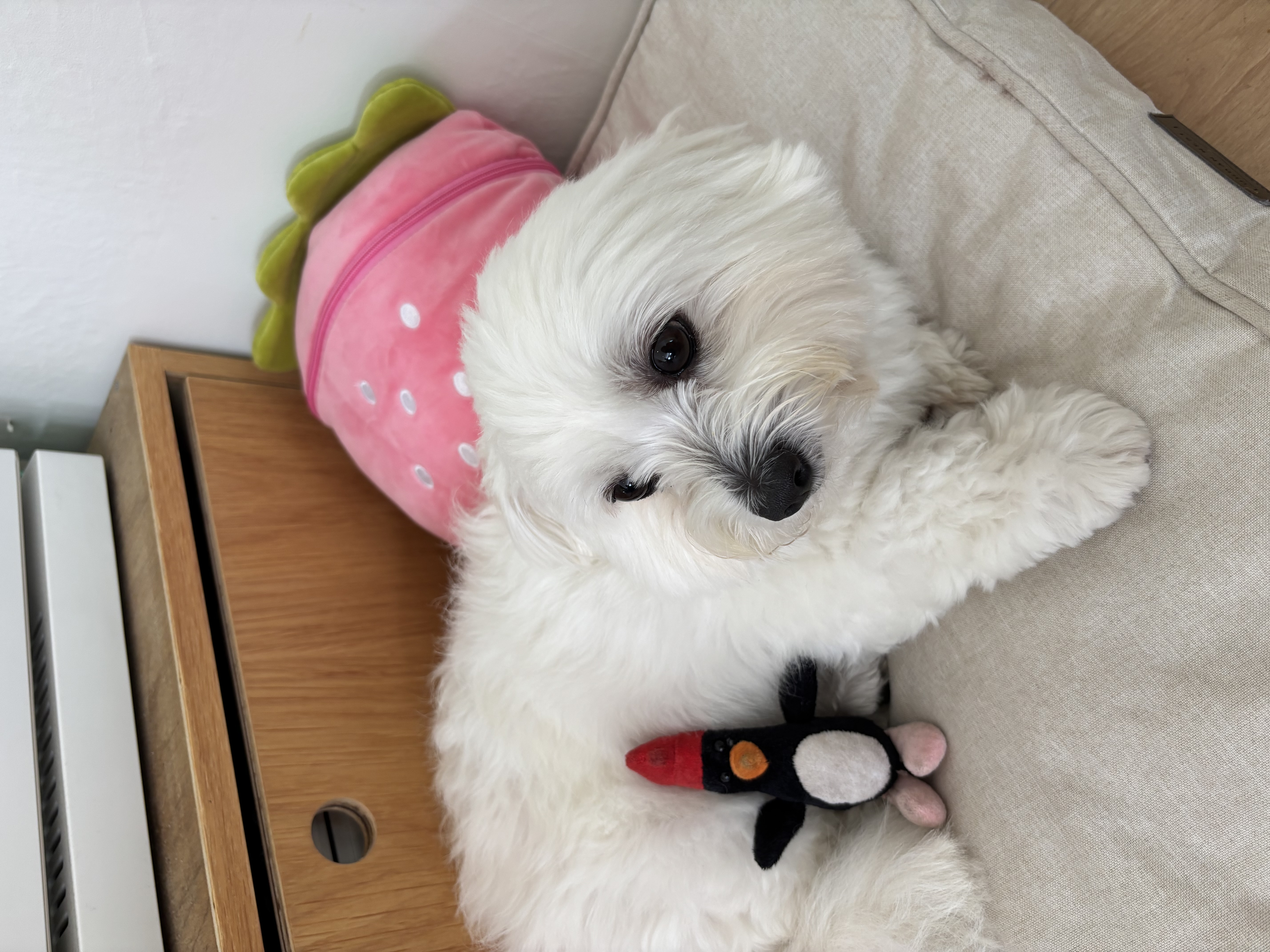 루이(코카)와 소담(꼬똥)이라는 강아지인데, 매일 매일 교대로 출근하고 있답니다.💚