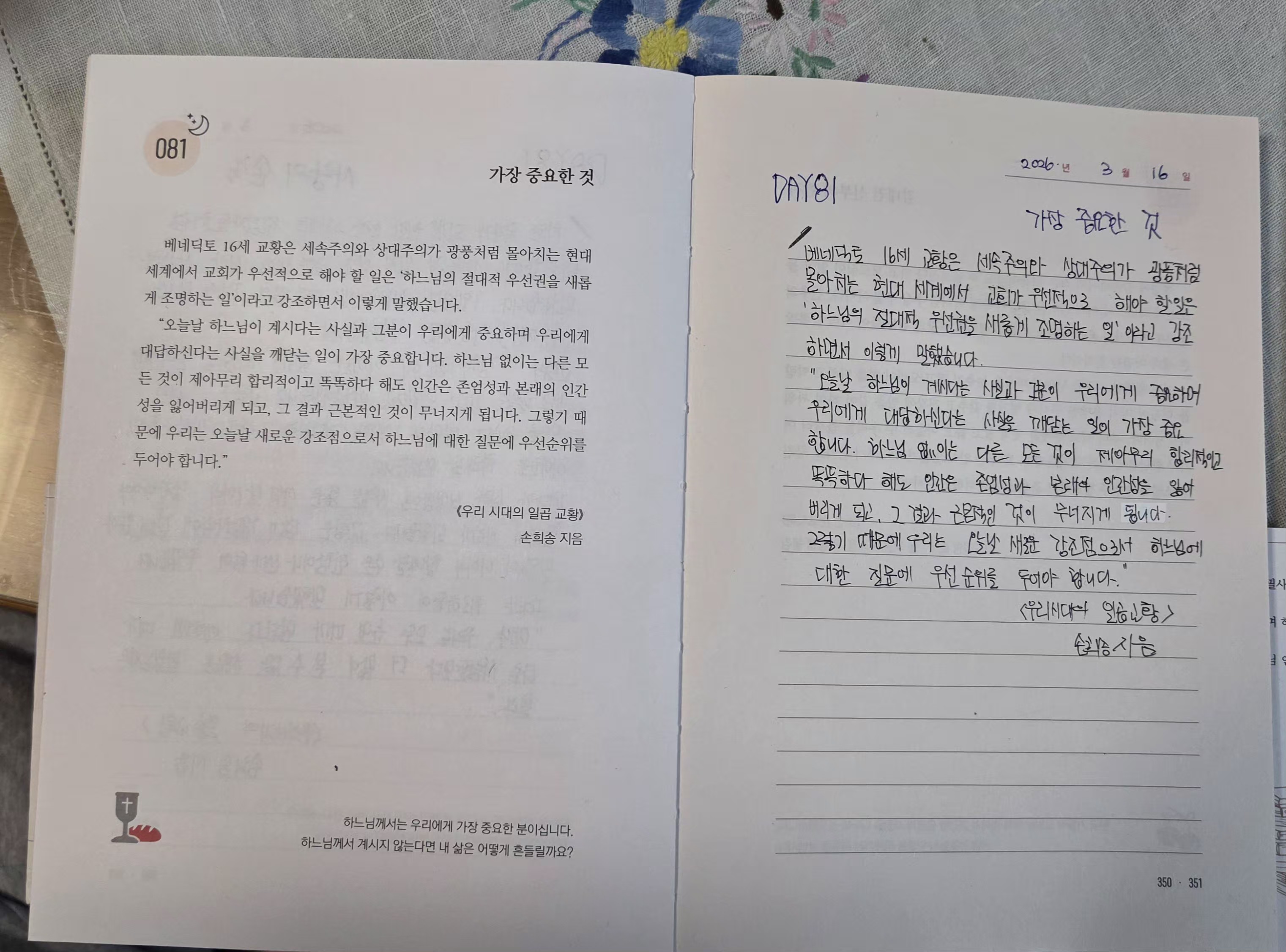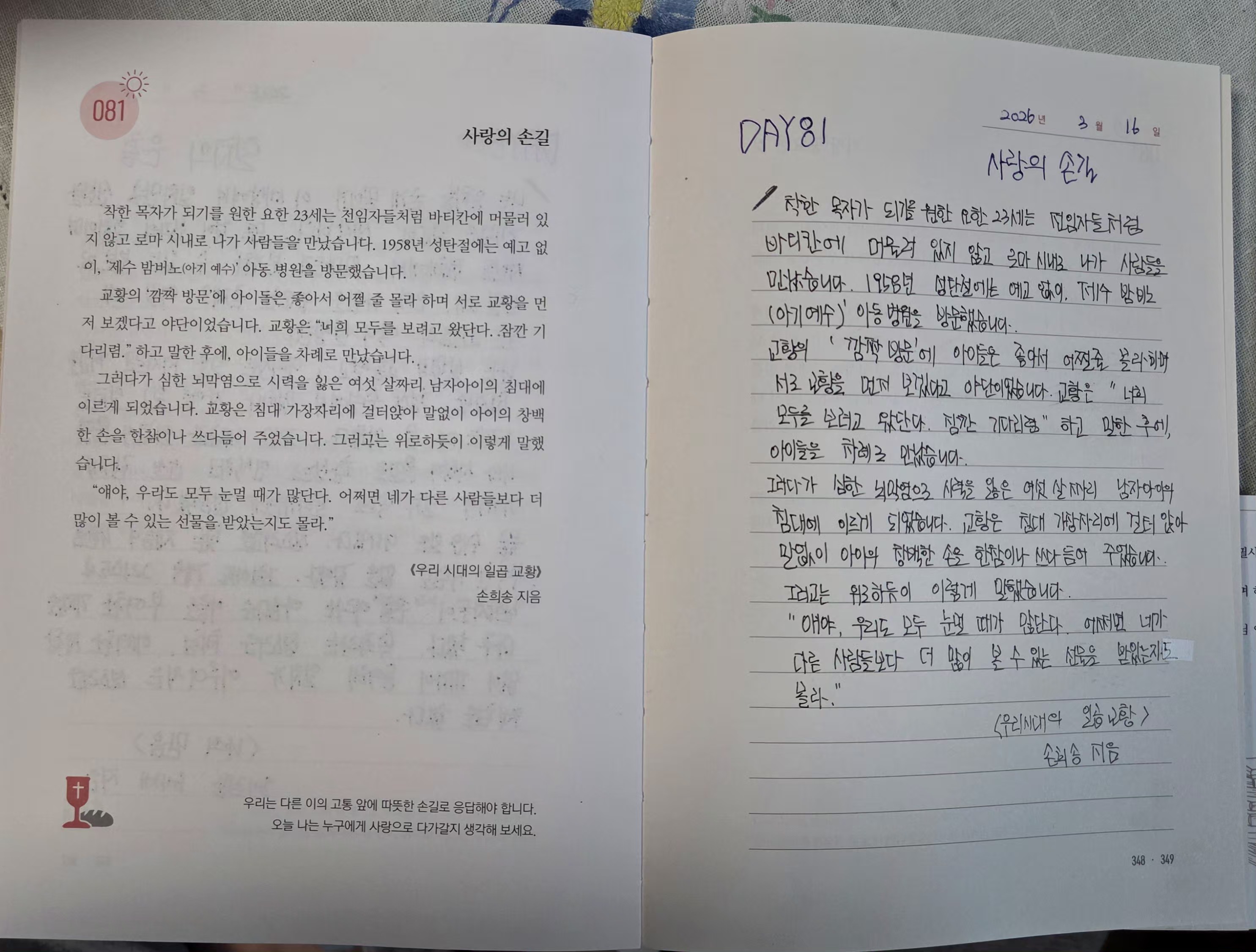 2026년 3월16일DAY81<사랑의손길,가장 중요한 것>필사인증합니다.