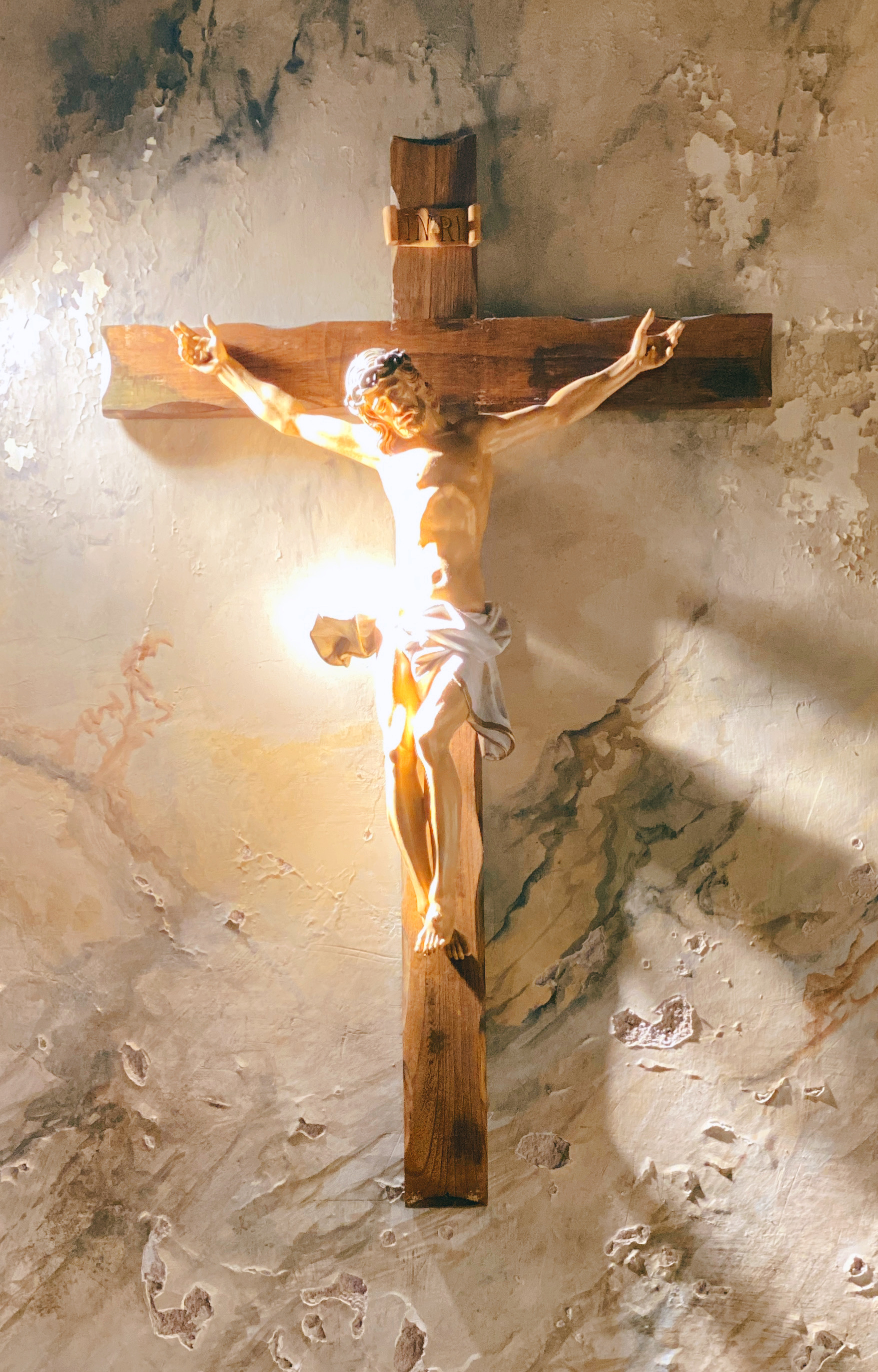 내 성지순례 여정을 돌아보는 가운데 어두운 성당안에서 이 십자가가 눈에 들어왔다.