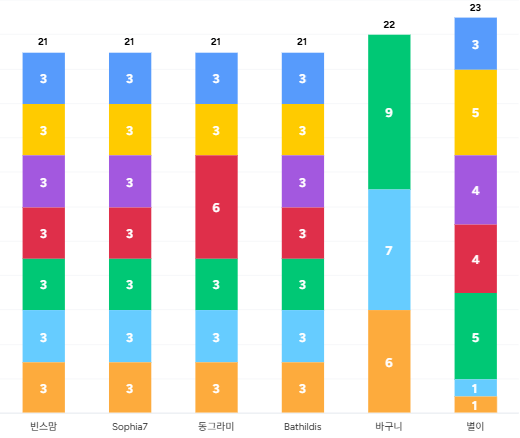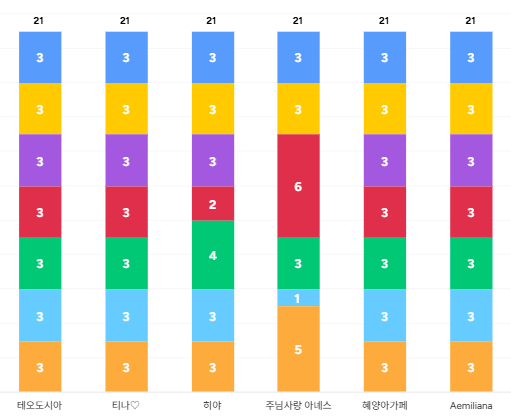 싱싱세실, 주님사랑 아녜스, 계란파국, 열매, 티나, Bathildis, 빈스맘, Aemiliana, 테오도시아, 동그라미, Claraej, 바구니, 비상안젤라, 히야, 혜양아가페, Sophia7, utina