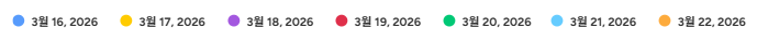 상단에 표기된 날짜별 색상을 확인하시어,