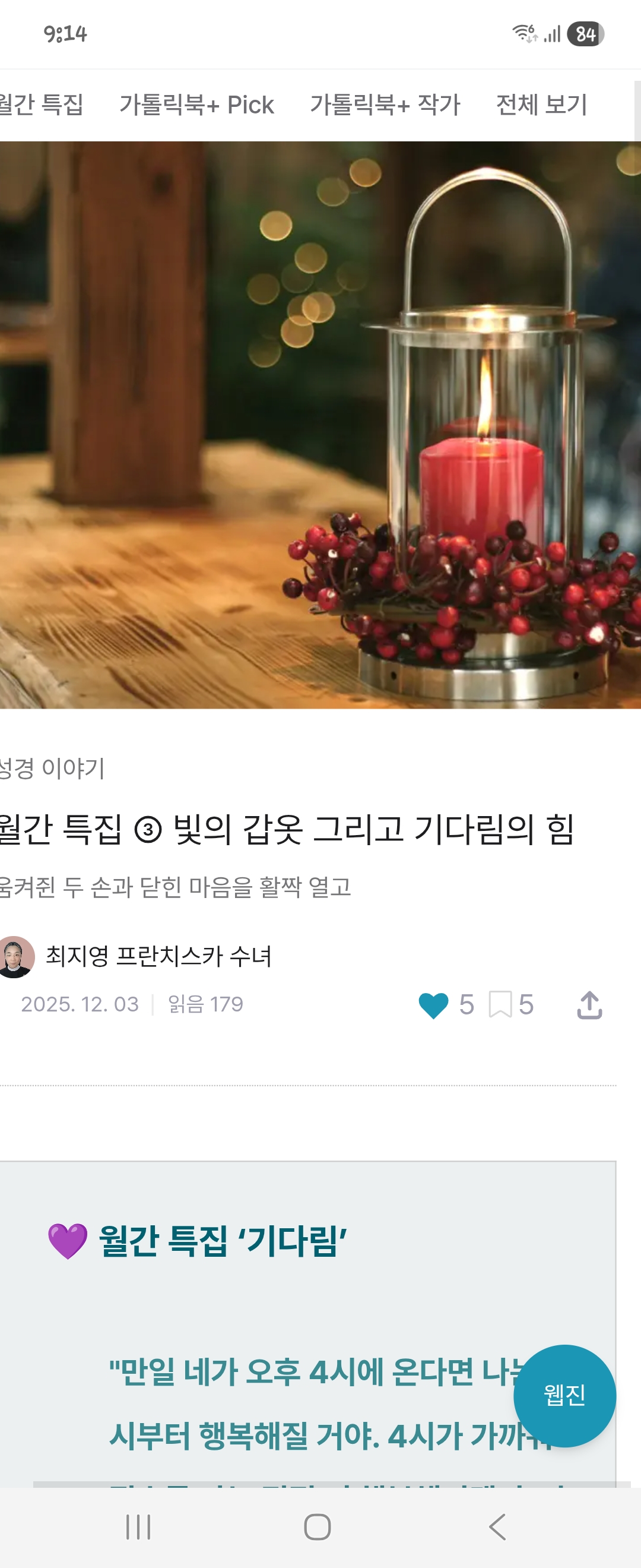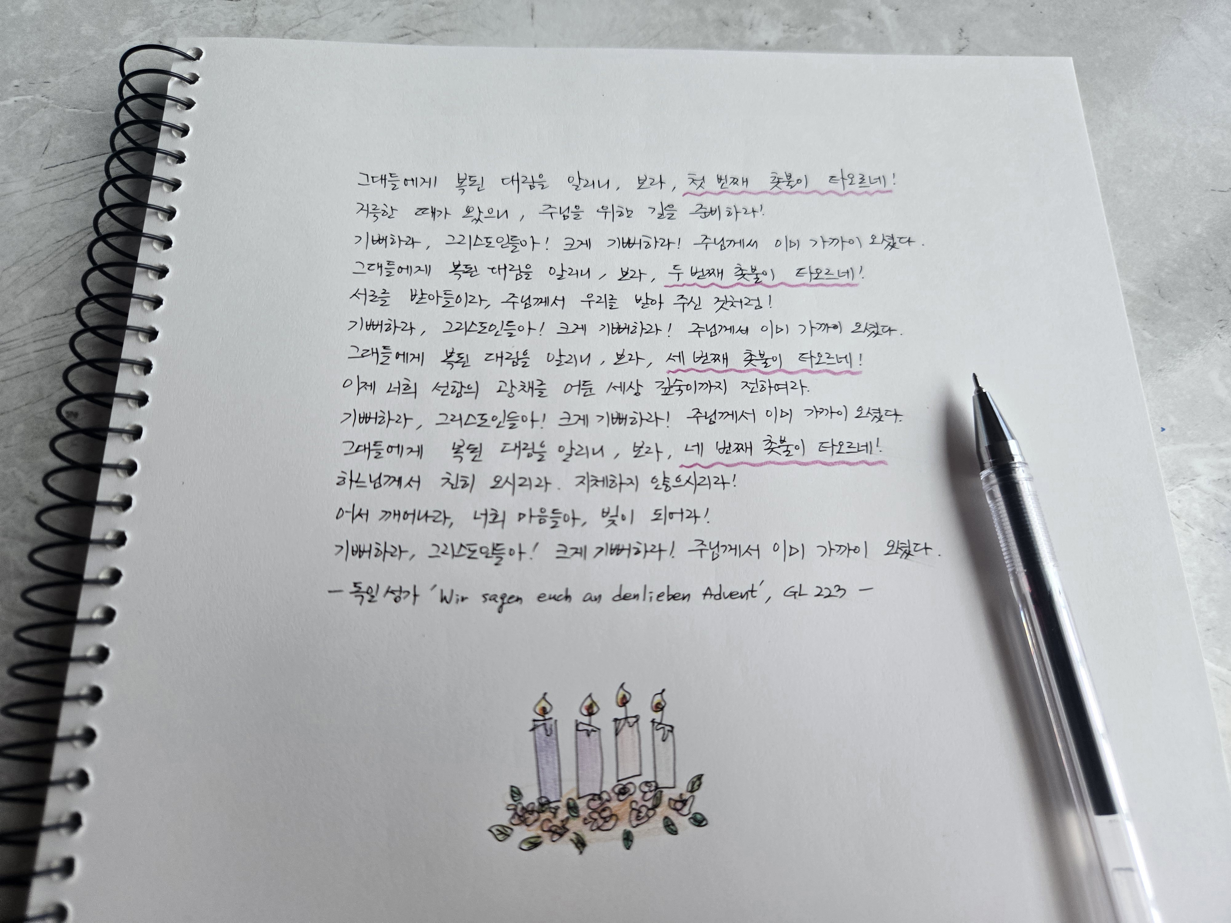 기다림의 시간이 행복임을 느끼며 좋은 글 잘 읽었습니다~ 마지막에 독일 성가가 있어 필사를 해보았습니다.