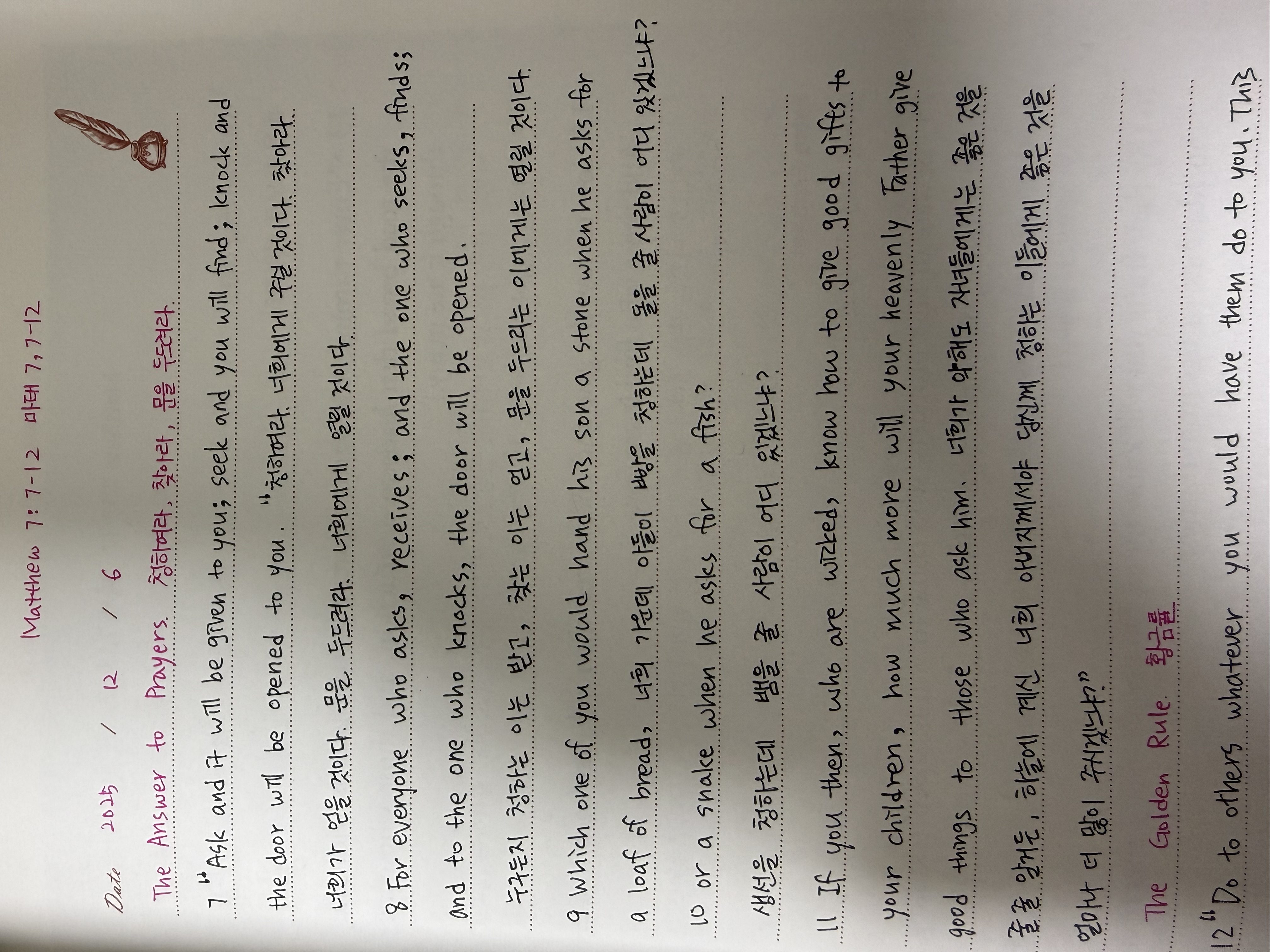 누구든지 청하는 이는 받고, 찾는 이는 얻고, 문을 두드리는 이에게는 열릴 것이다. (마태 7:8)
