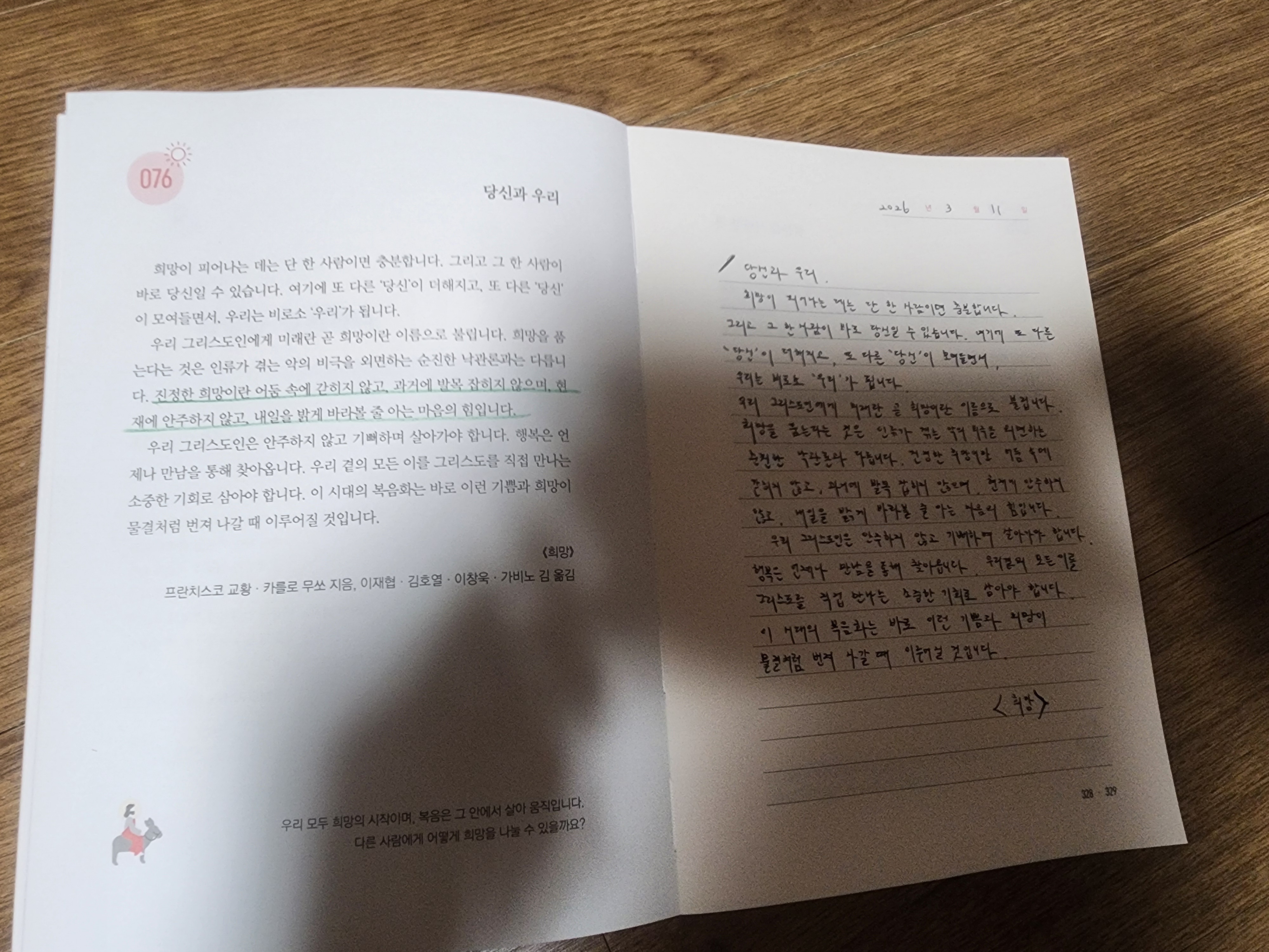 서로의 마음에 희망과 기쁨이 생긴다고 생각합니다.