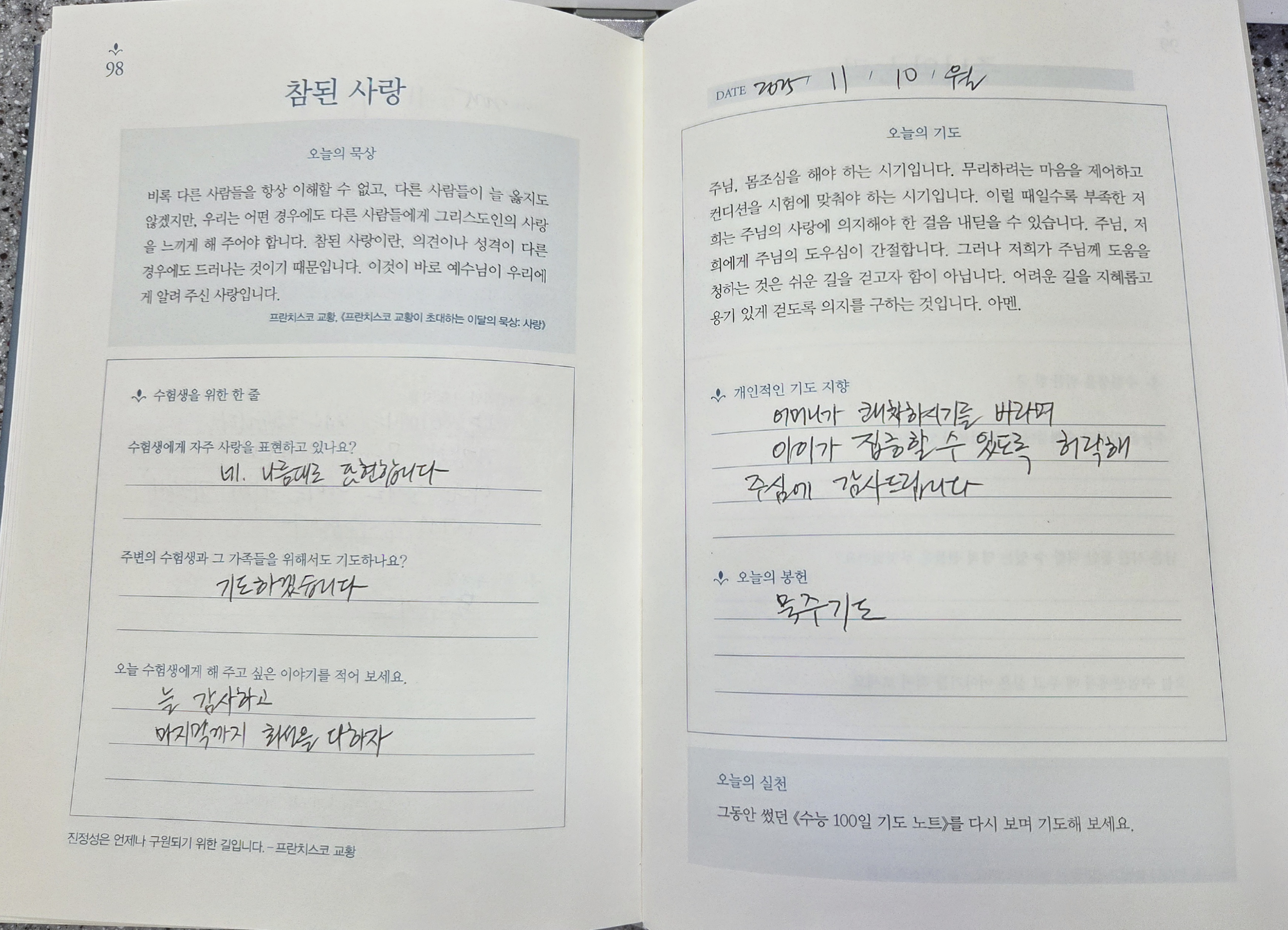 98일차 기도 올립니다