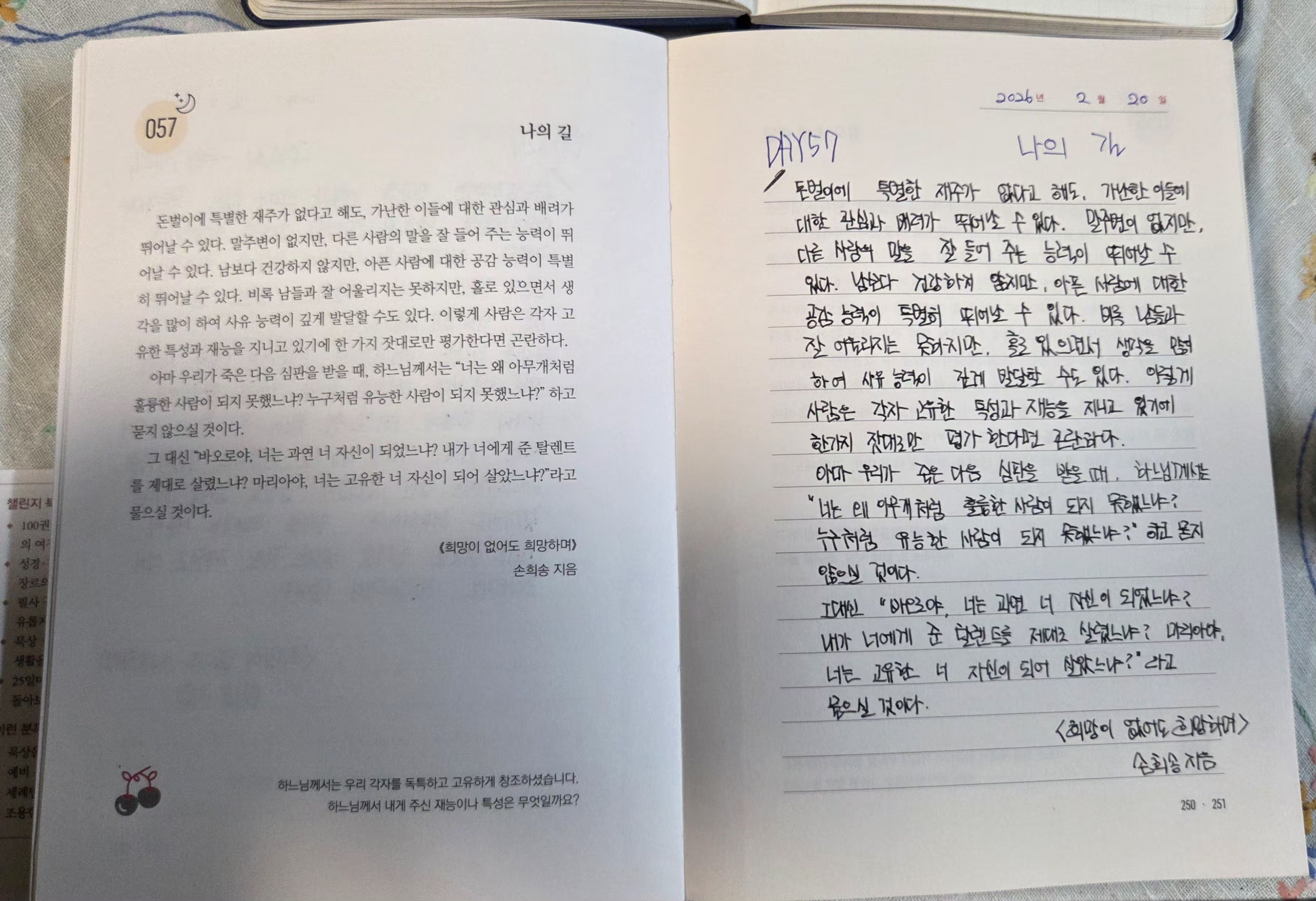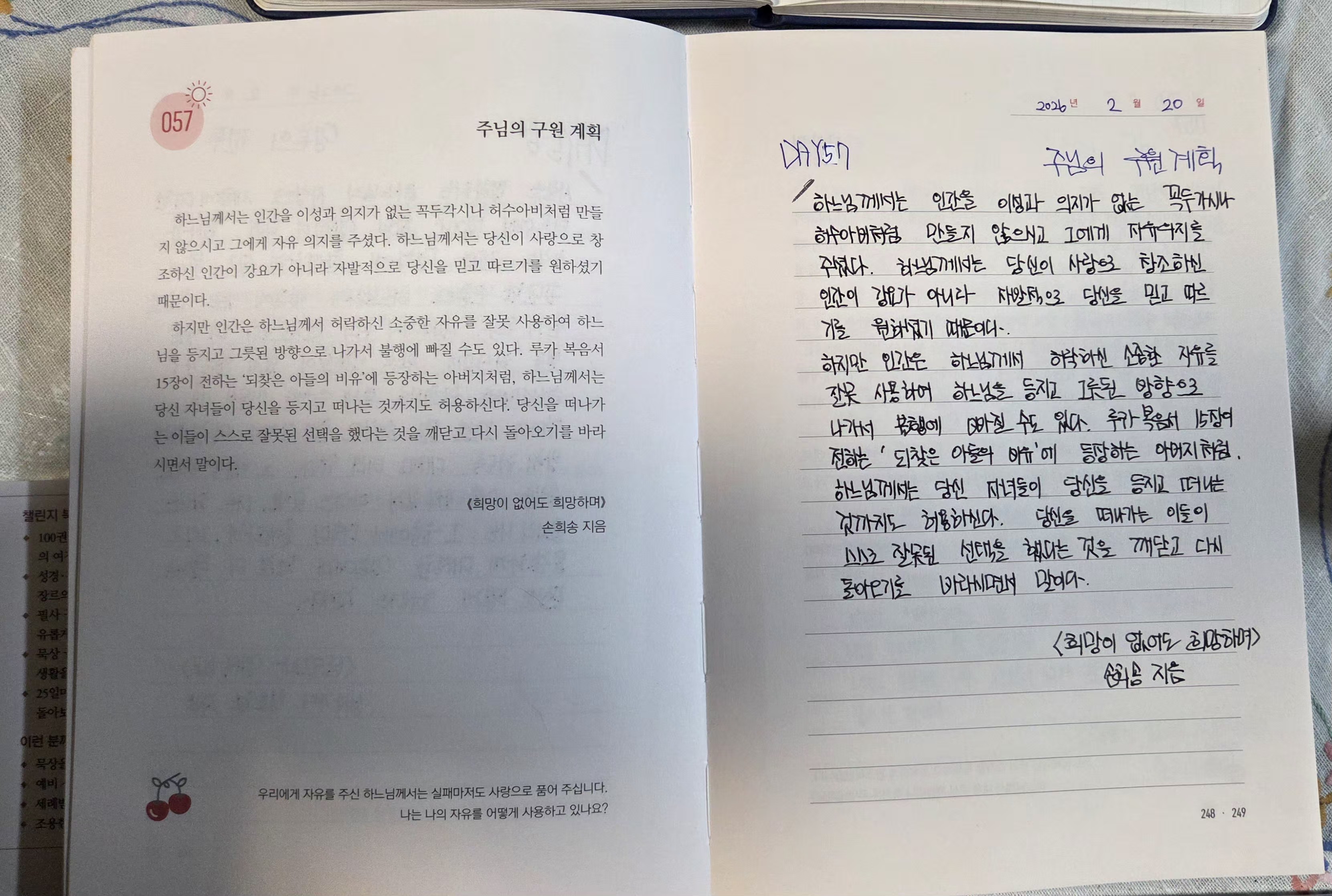 2026년2월20일DAY57<주님의 구원계획,나의 길>필사인증합니다.