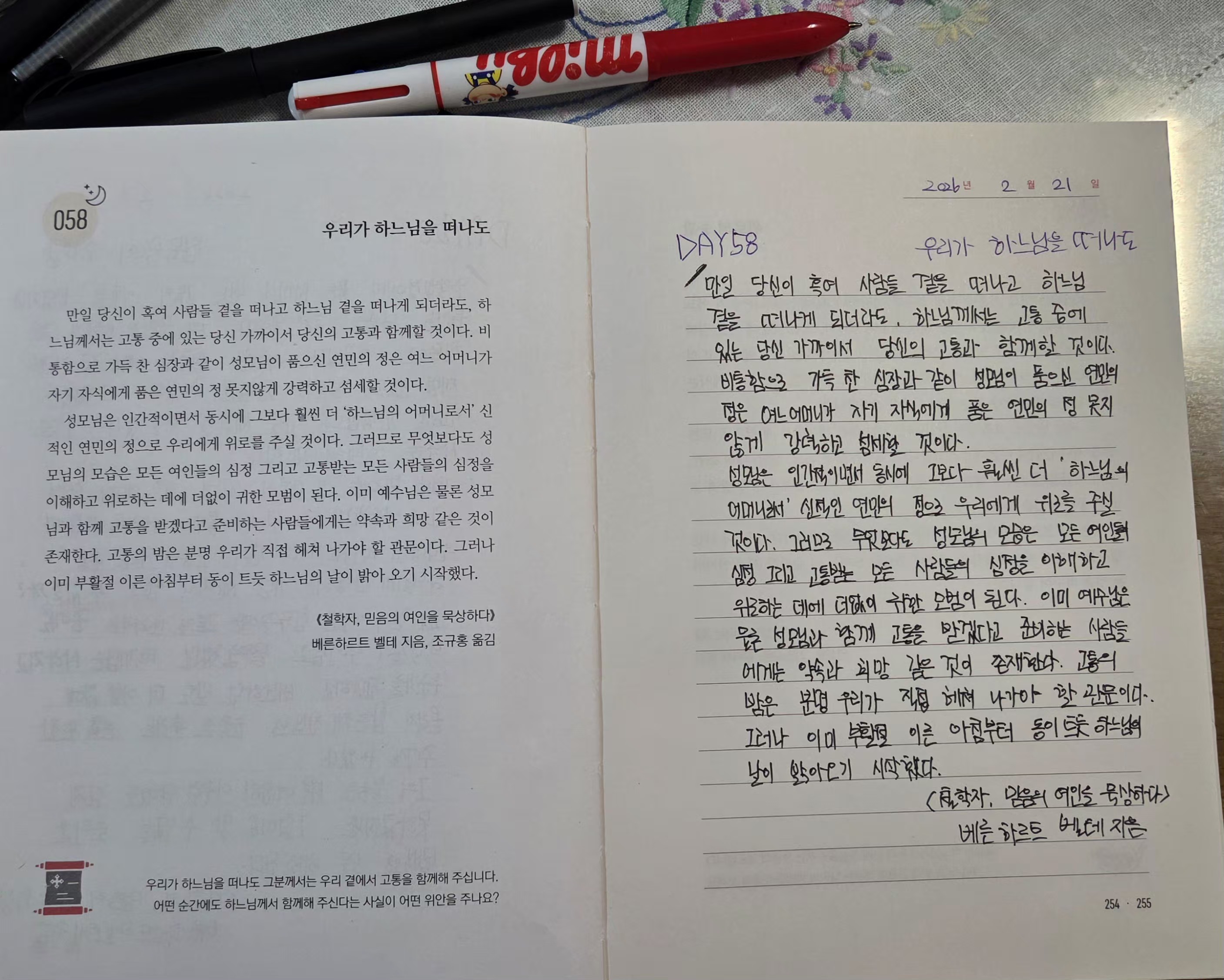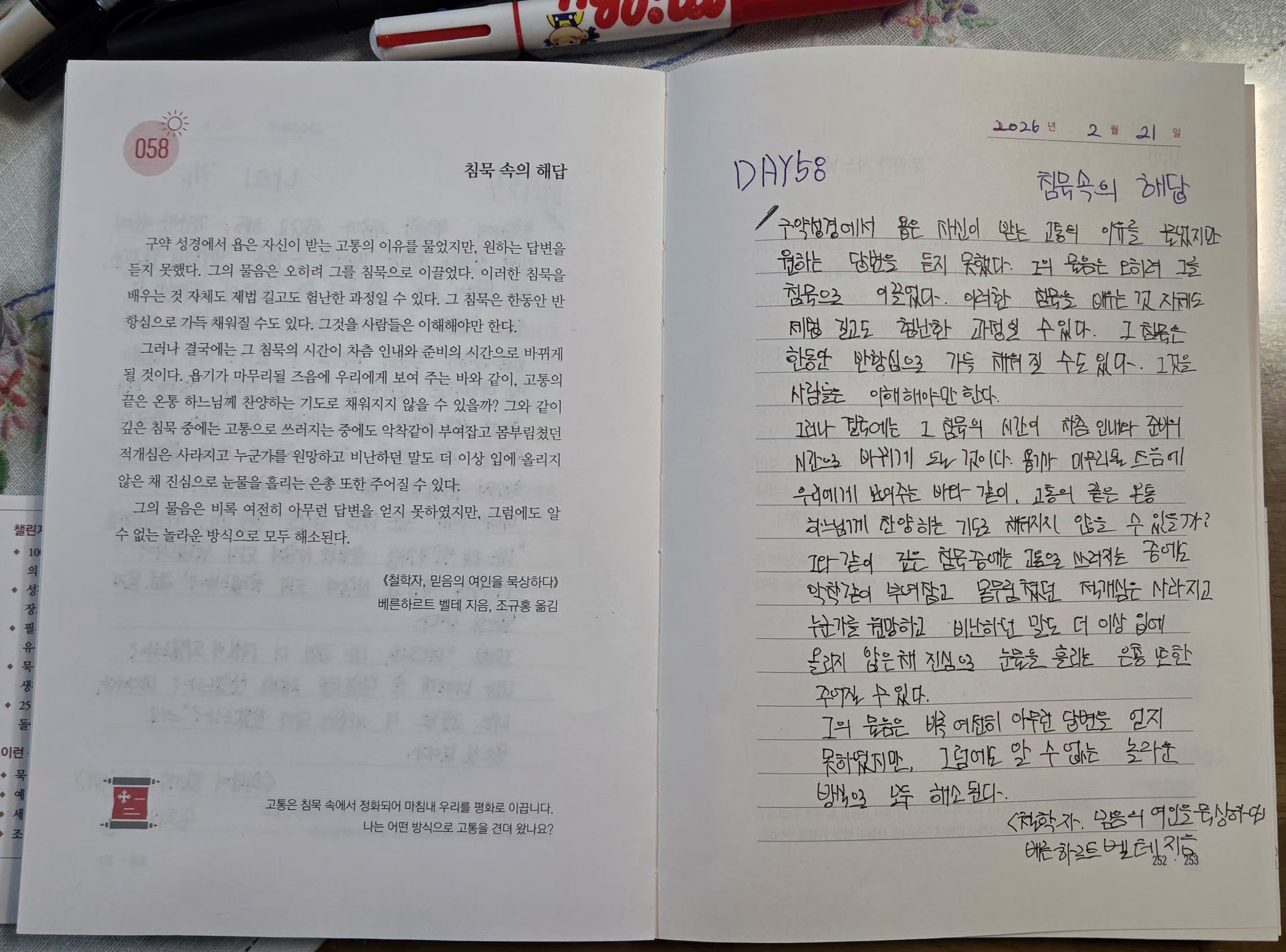 2026년2월21일 DAY58<침묵속의해답,우리가하느님을떠나도>필사인증합니다.