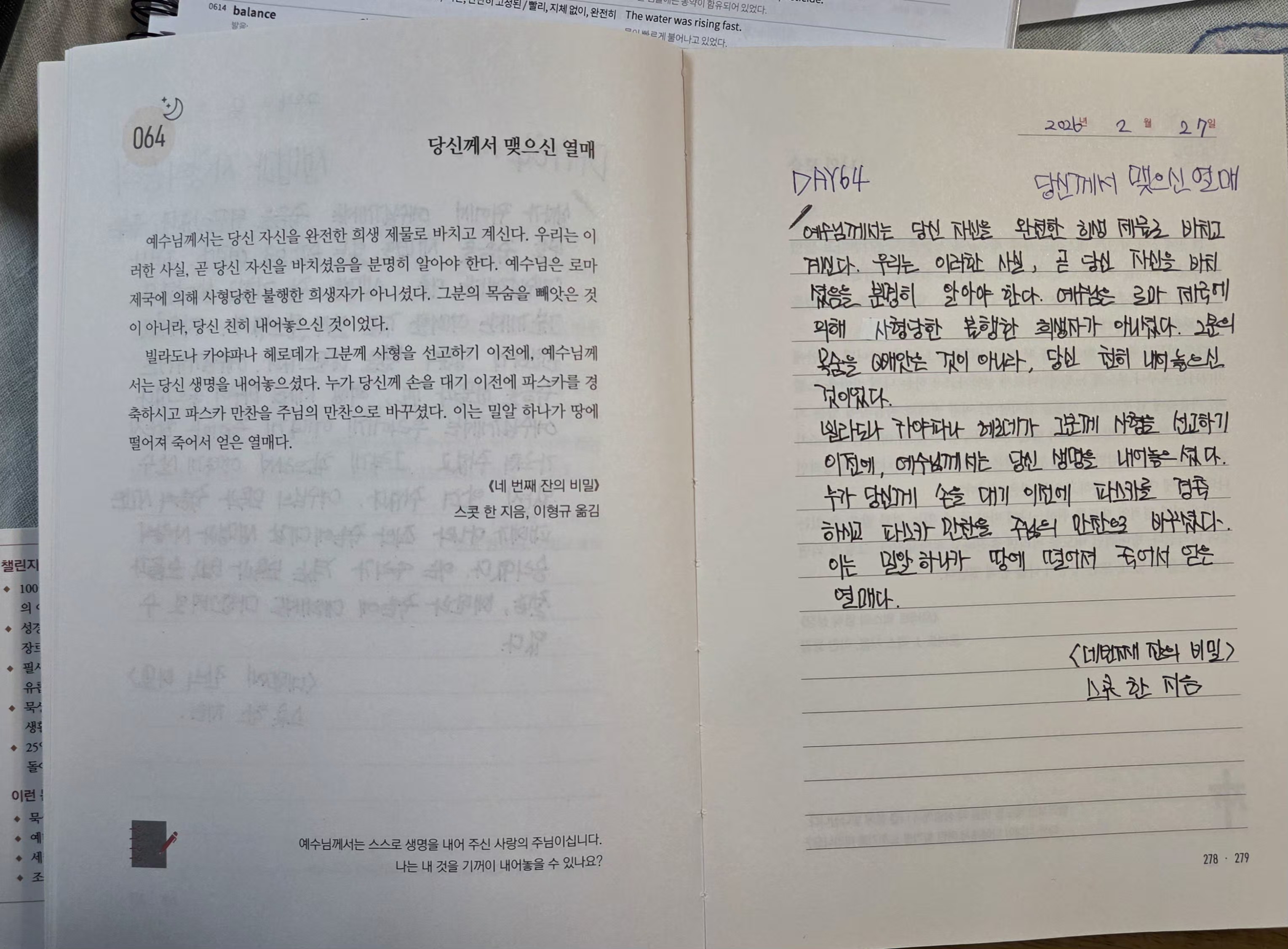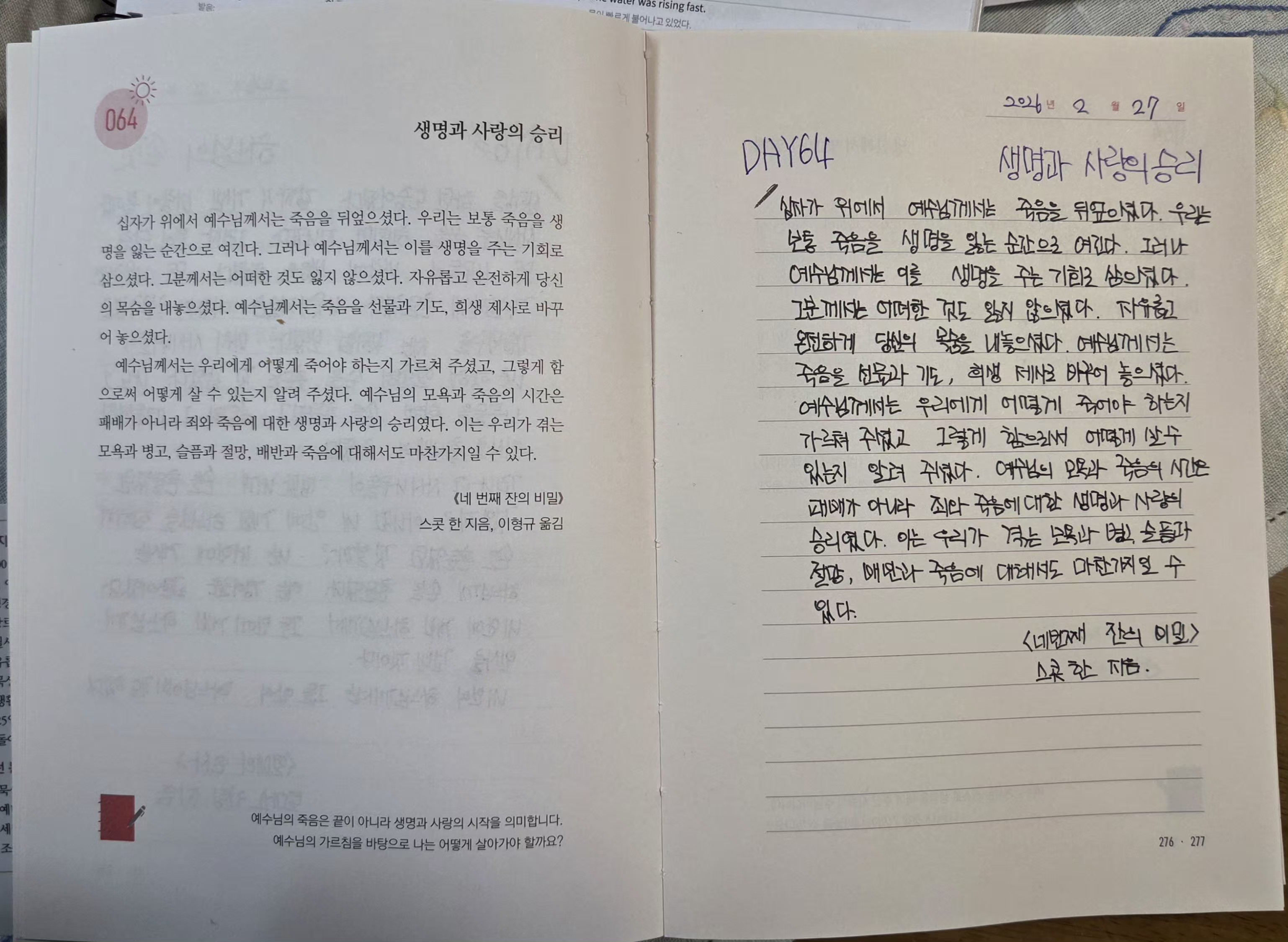 DAY64<생명과사랑의 승리,당신께서맺으신열매>필사인증합니다.