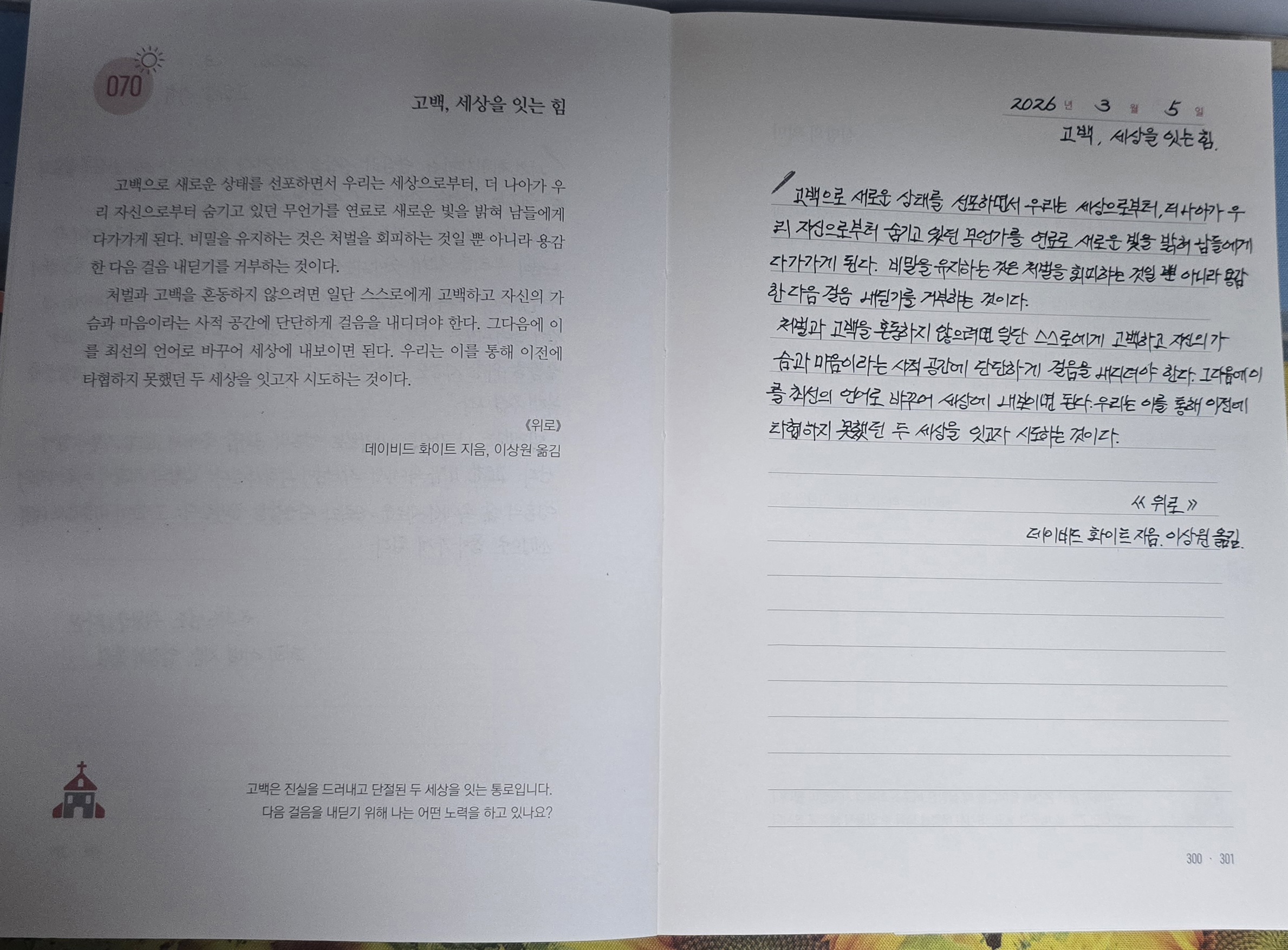 Day 70 고백, 세상을 잇는 힘/ 실망의 의미