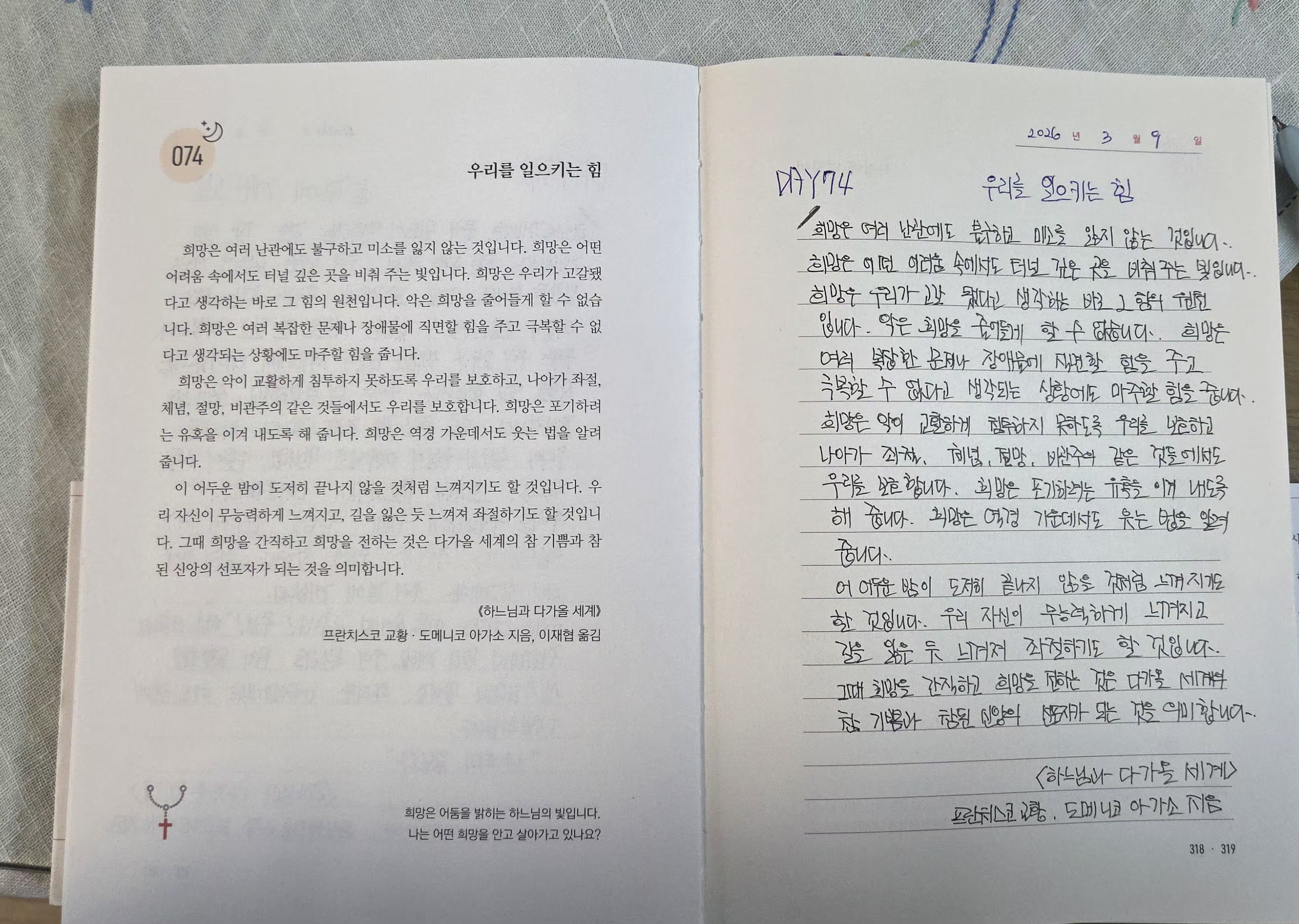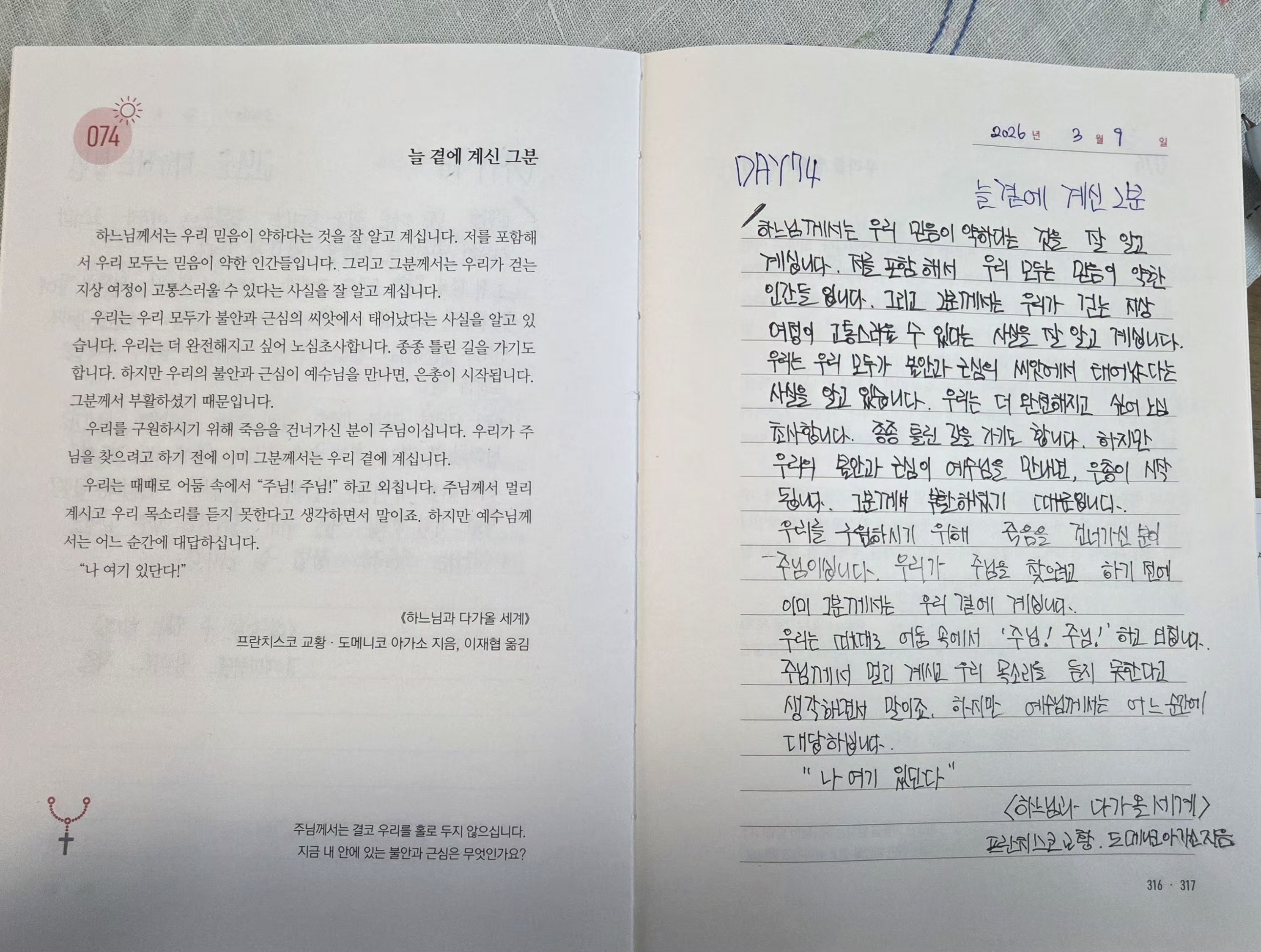 2026년3월9일DAY74<늘곁에계신 그분,우리를 일으키는 힘>필사인증합니다.