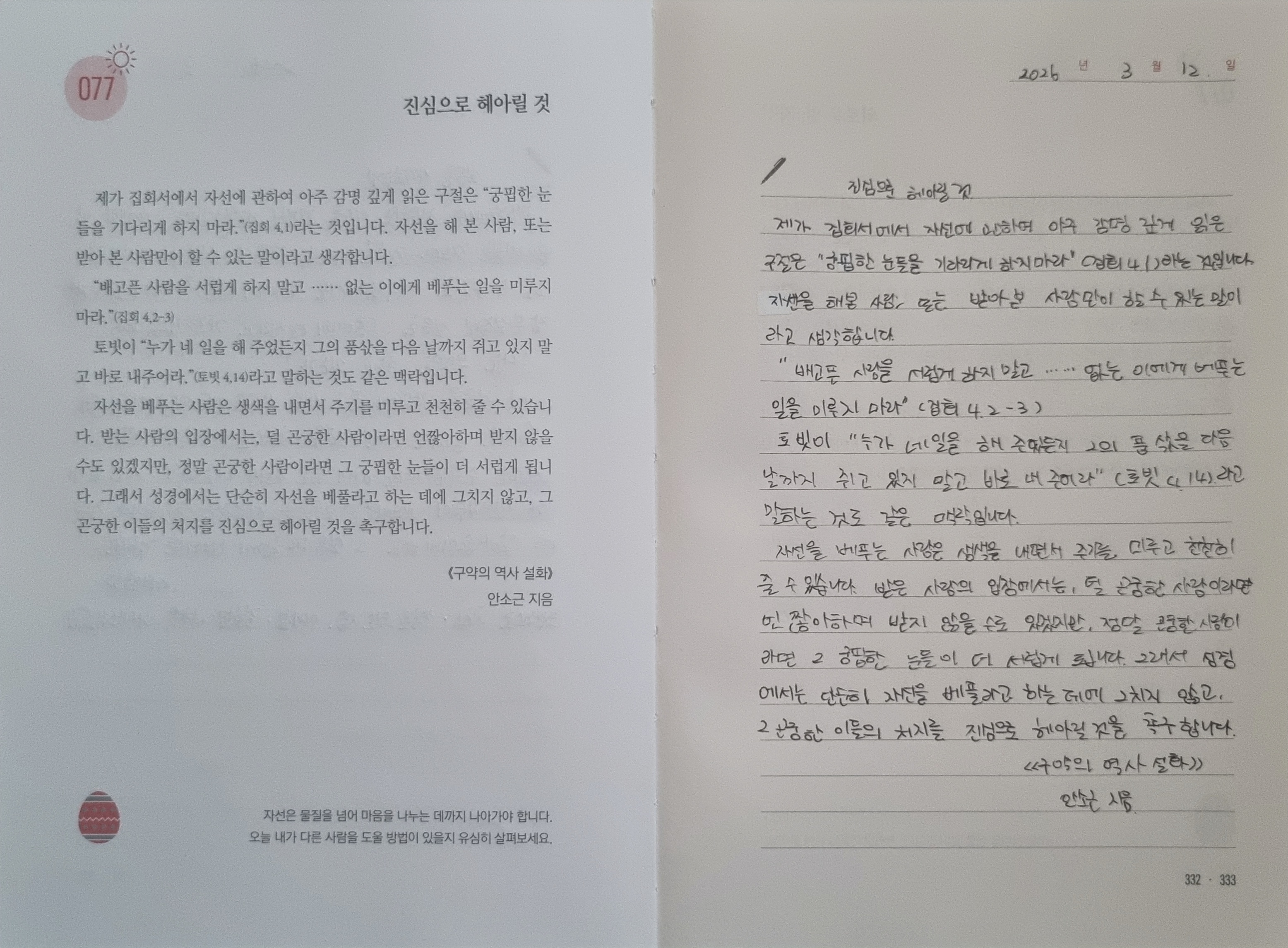 DAY77 진심으로 헤아릴것/ 의로운 일, 자선