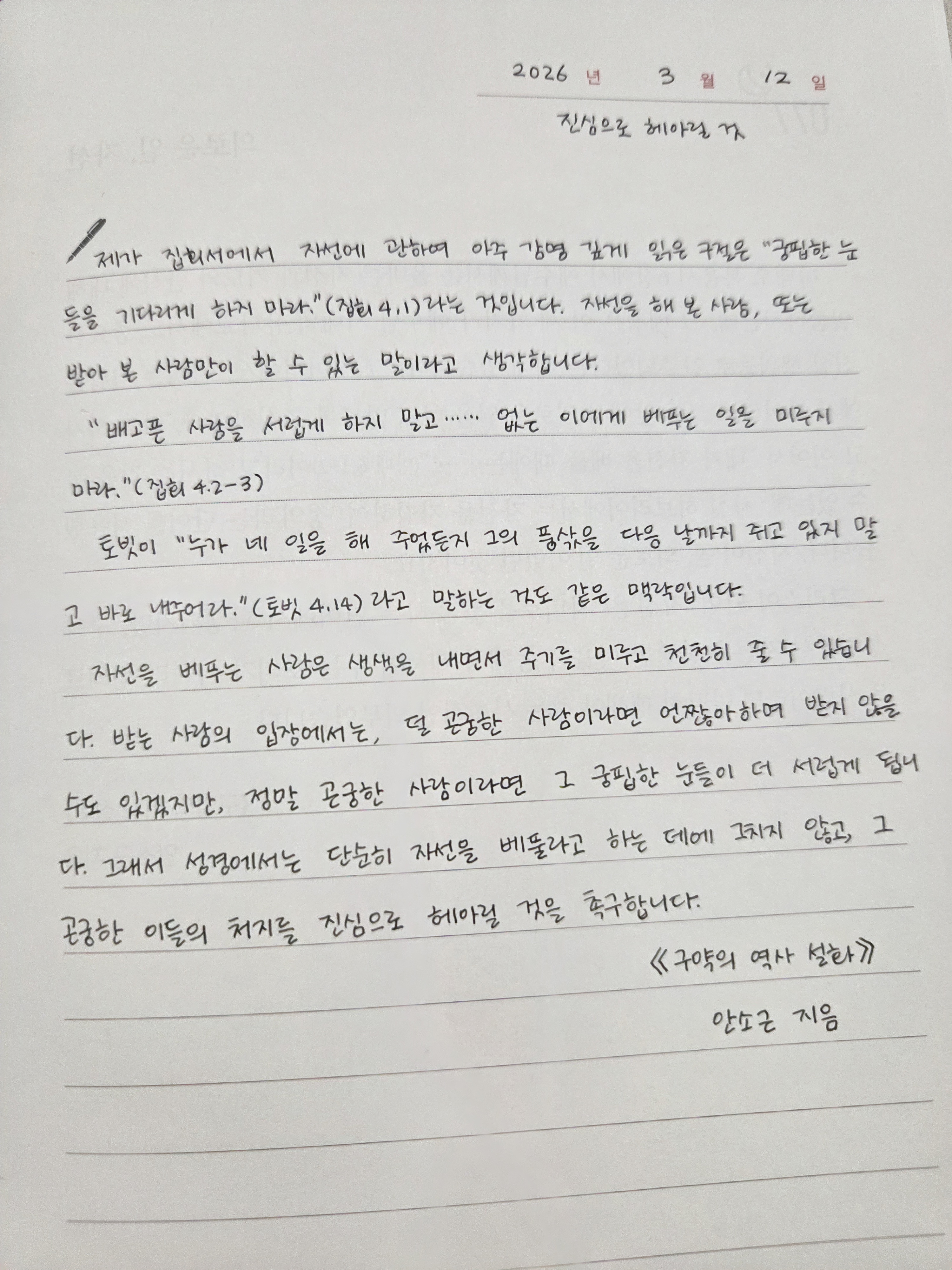 77Day 진심으로 헤아릴 것 &의로운 일, 자선
