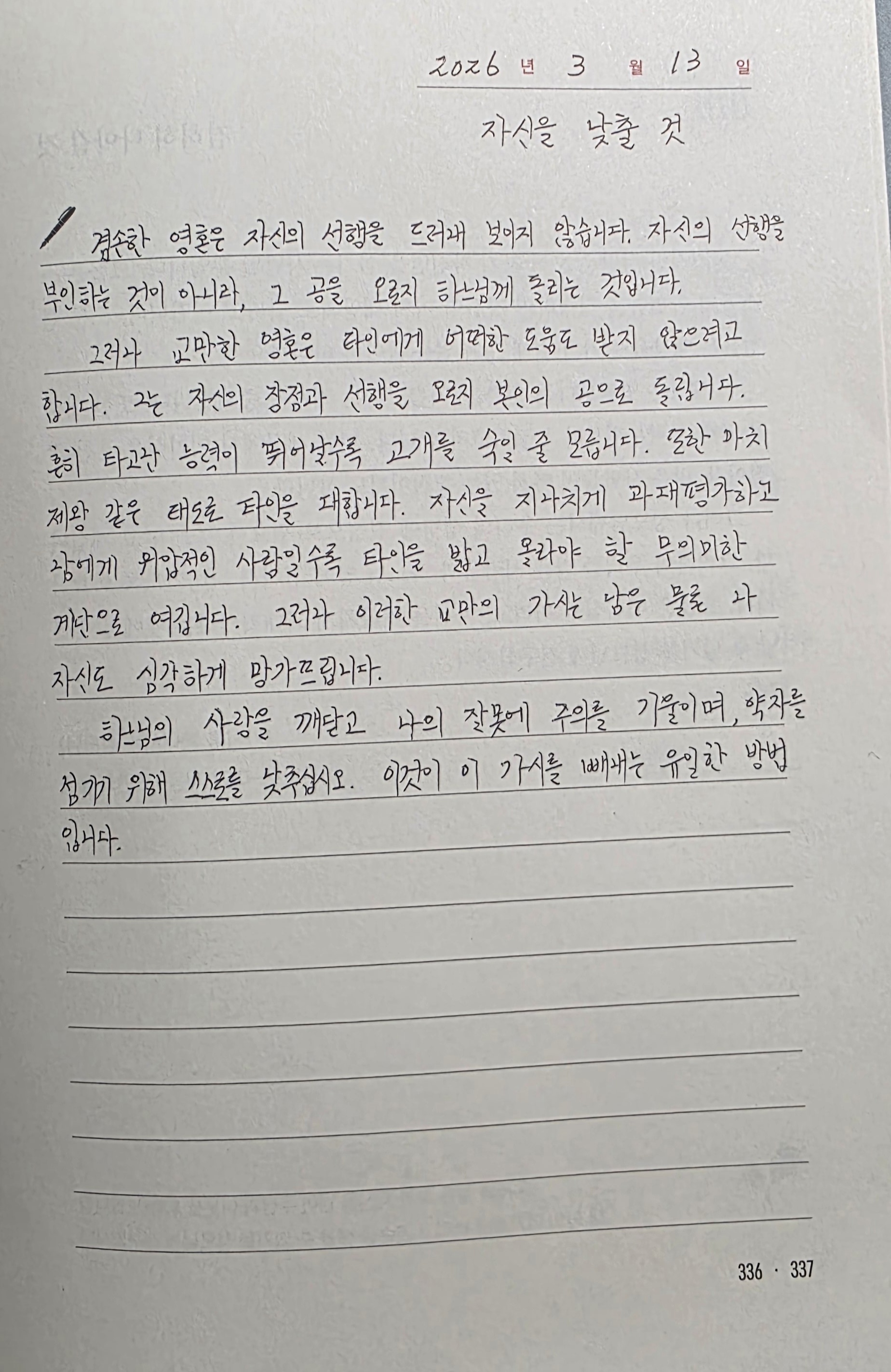 Day78<자신을 낮출 것/겸허히 나아갈 것>