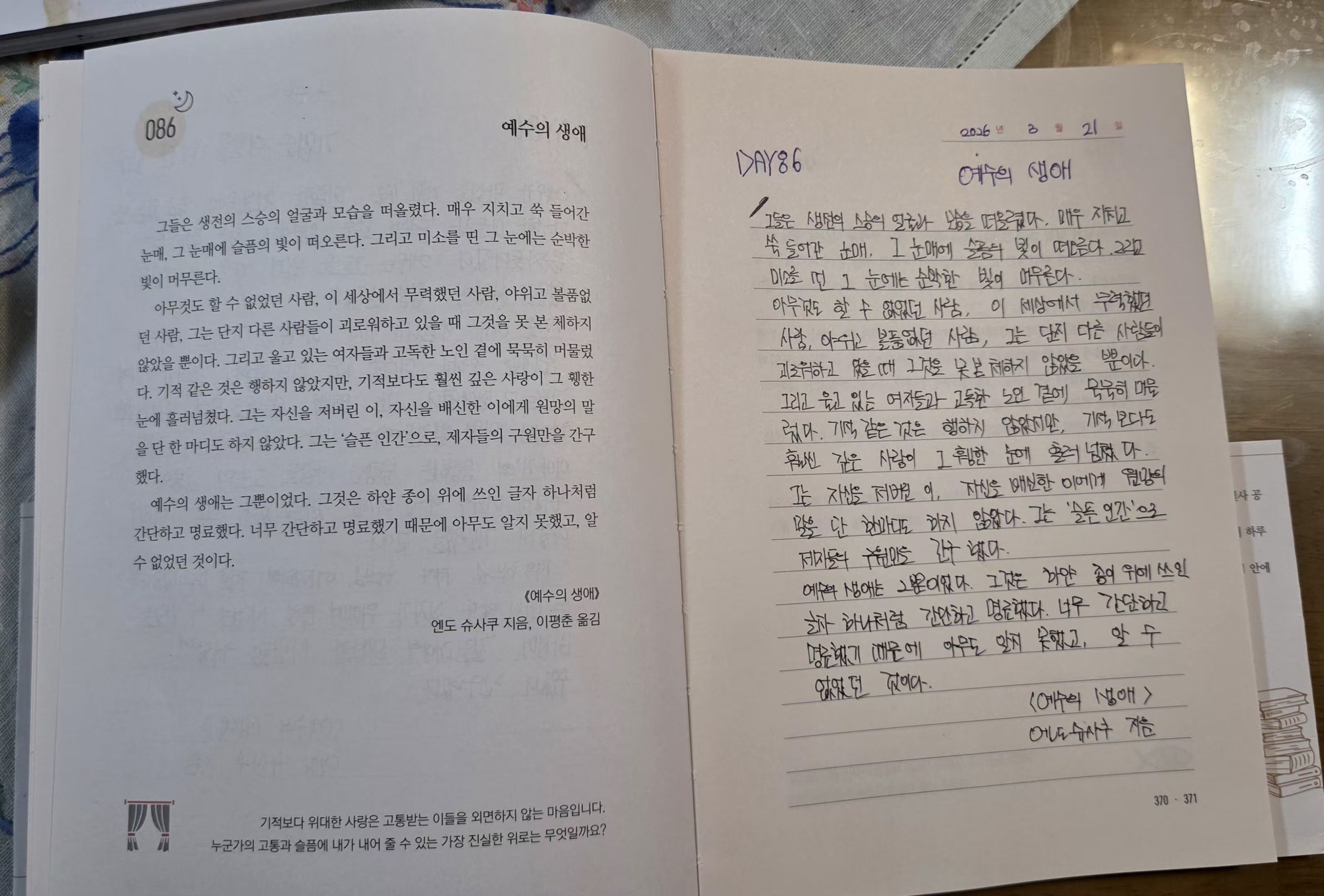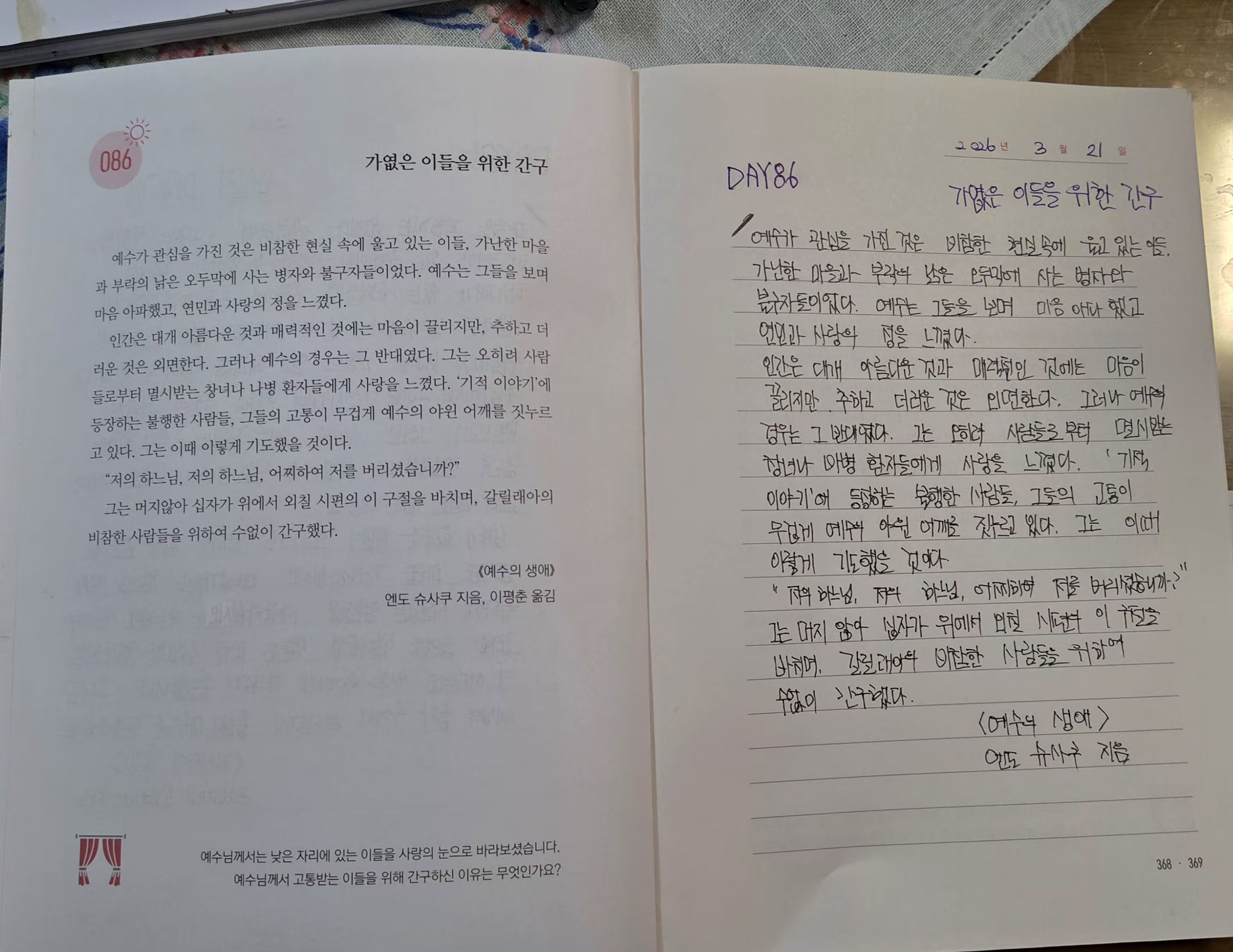 2026년3월21일DAY86<가엾은이들을위한 간구,예수의생애>필사인증합니다.