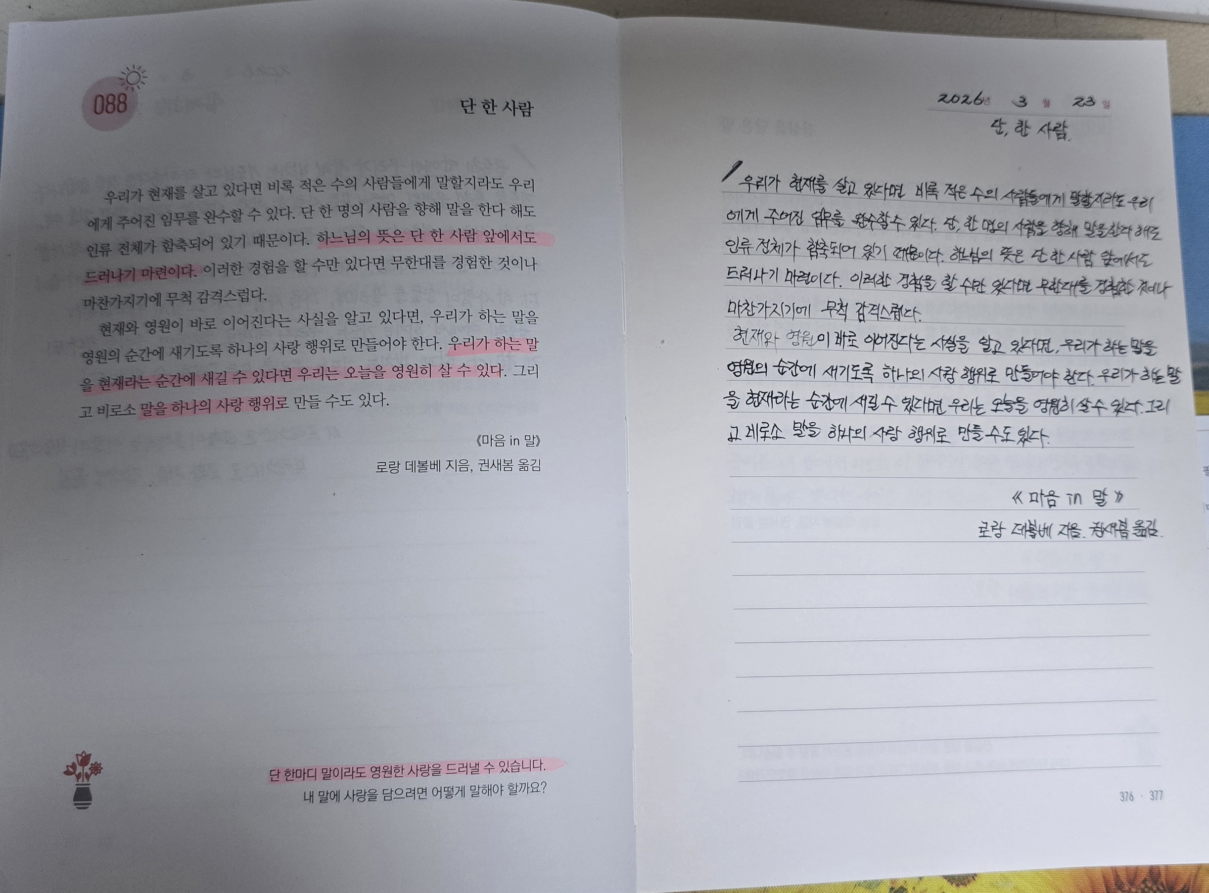 DAY88.단 한사람/ 진심을 담은 말