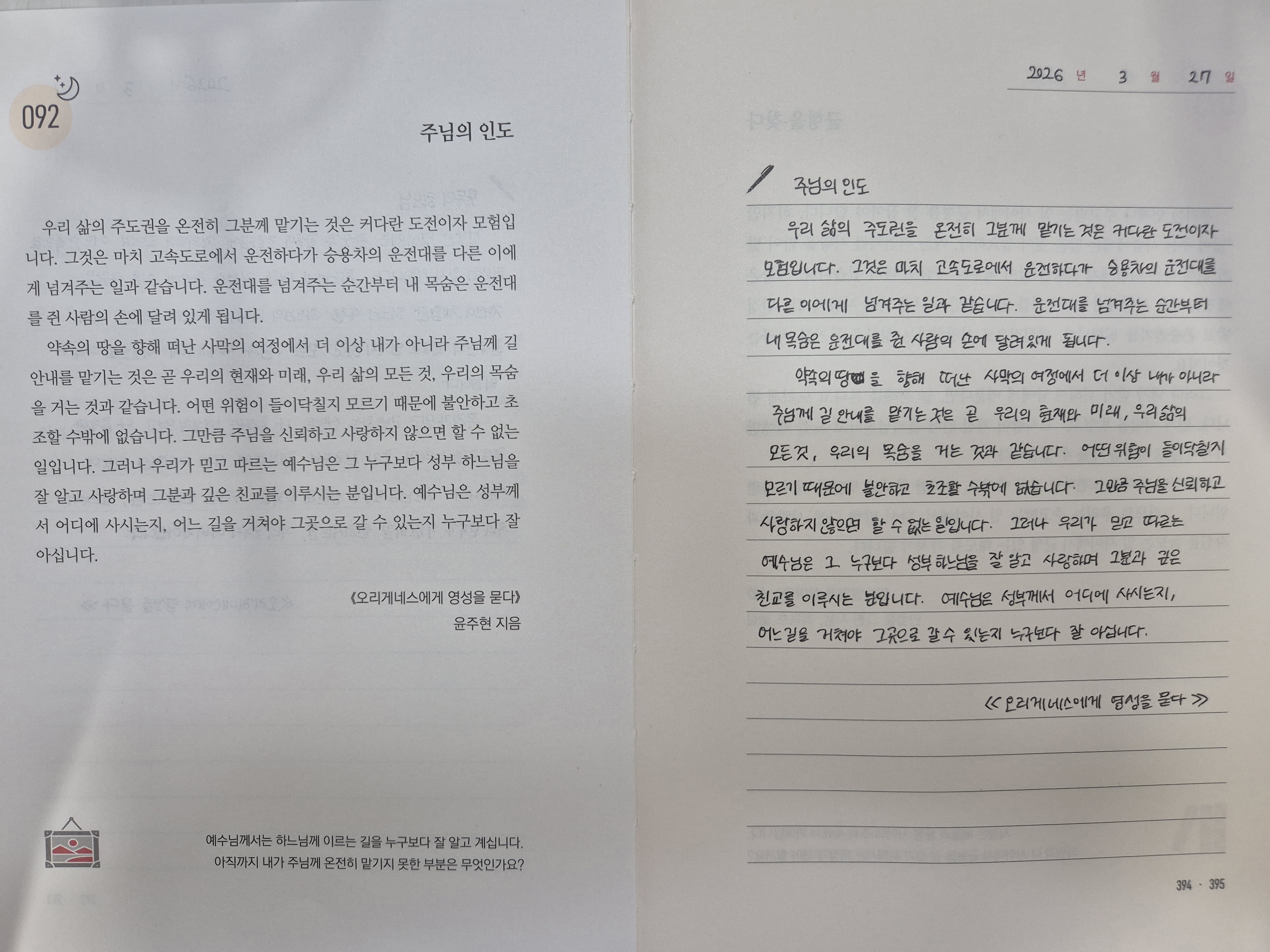 Day92. 모두의 하느님, 주님의 인도