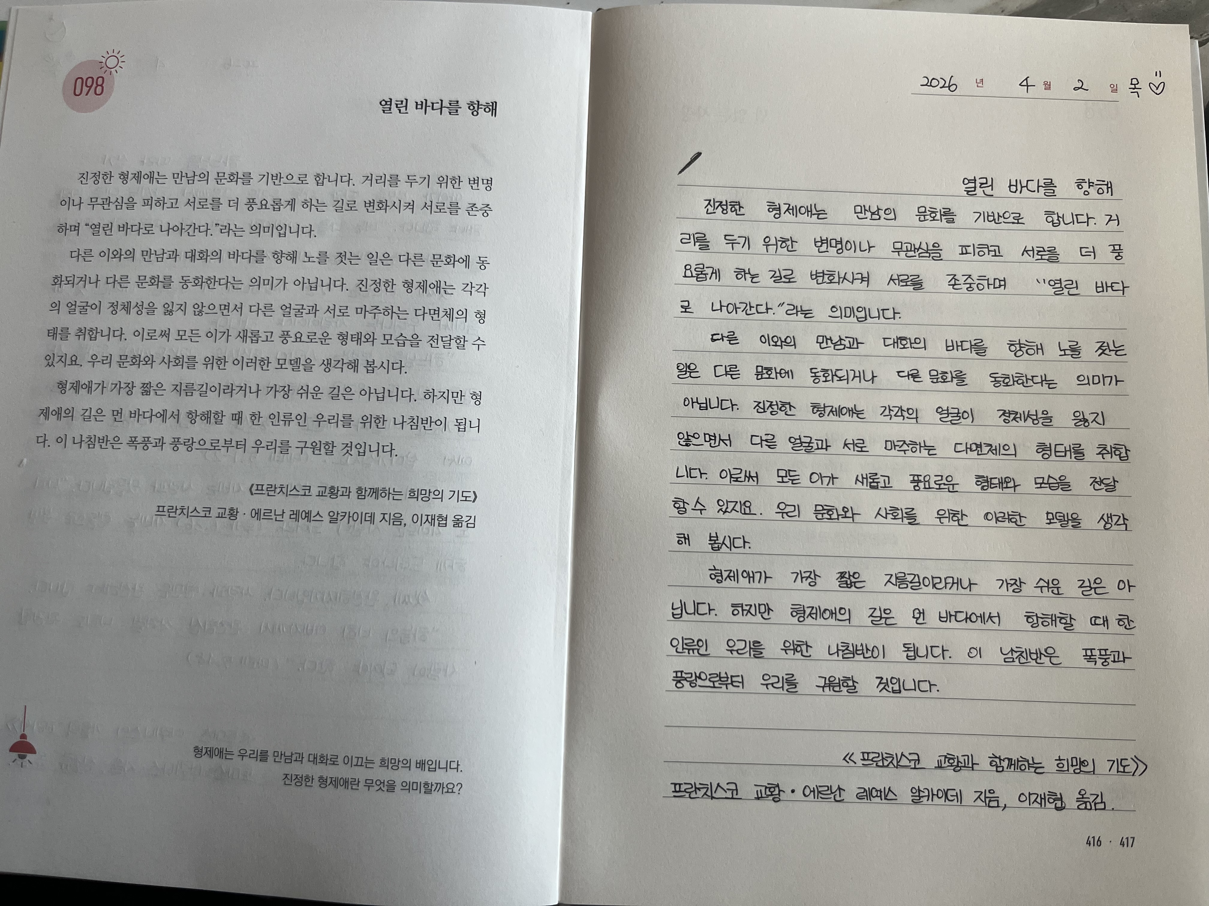 <<프란치스코 교황과 함께하는 희망의 기도>>