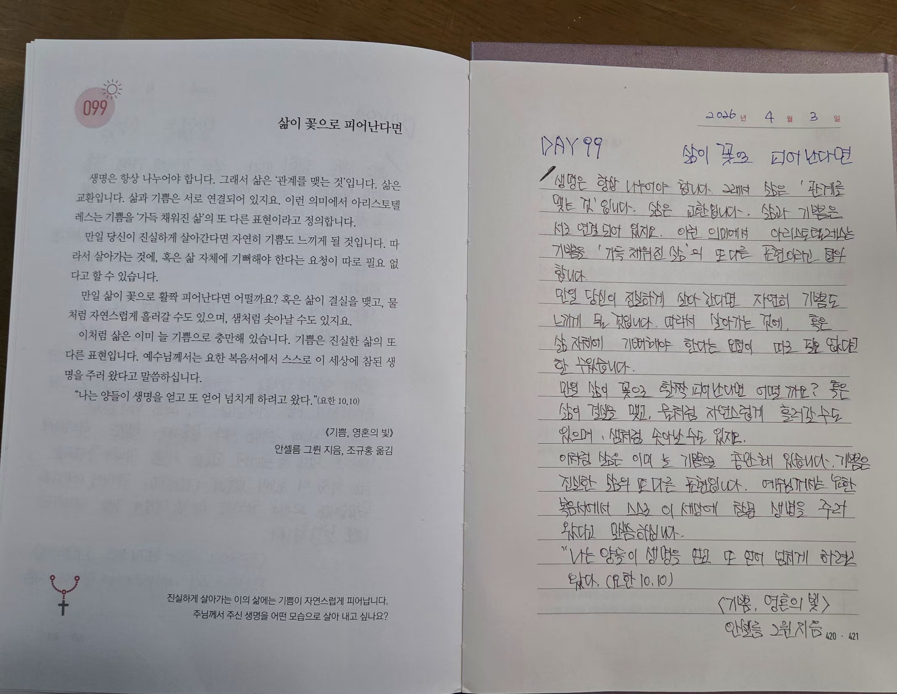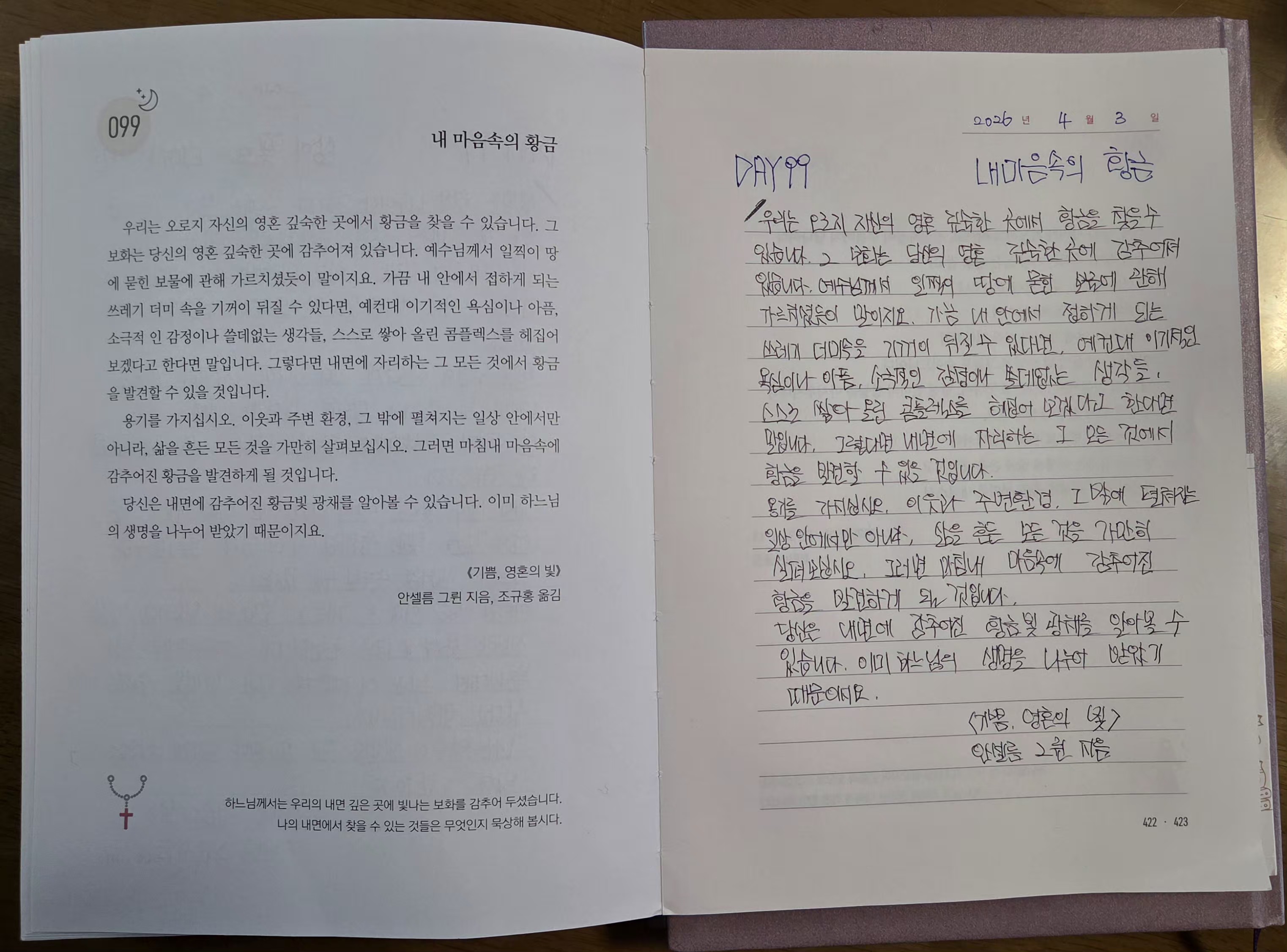 2027년4월3일DAY99<삶이꽃으로 피어난다면,내마음속의 황금>필사인증합니다.