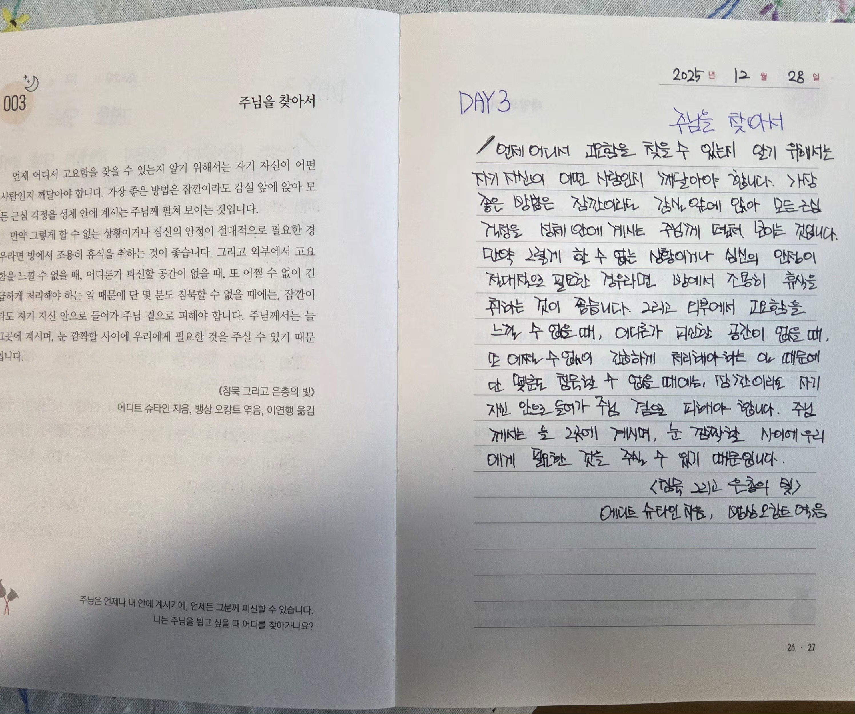 12월28일 <그분을 닮는 길,주님을 찾아서>필사 인증합니다
