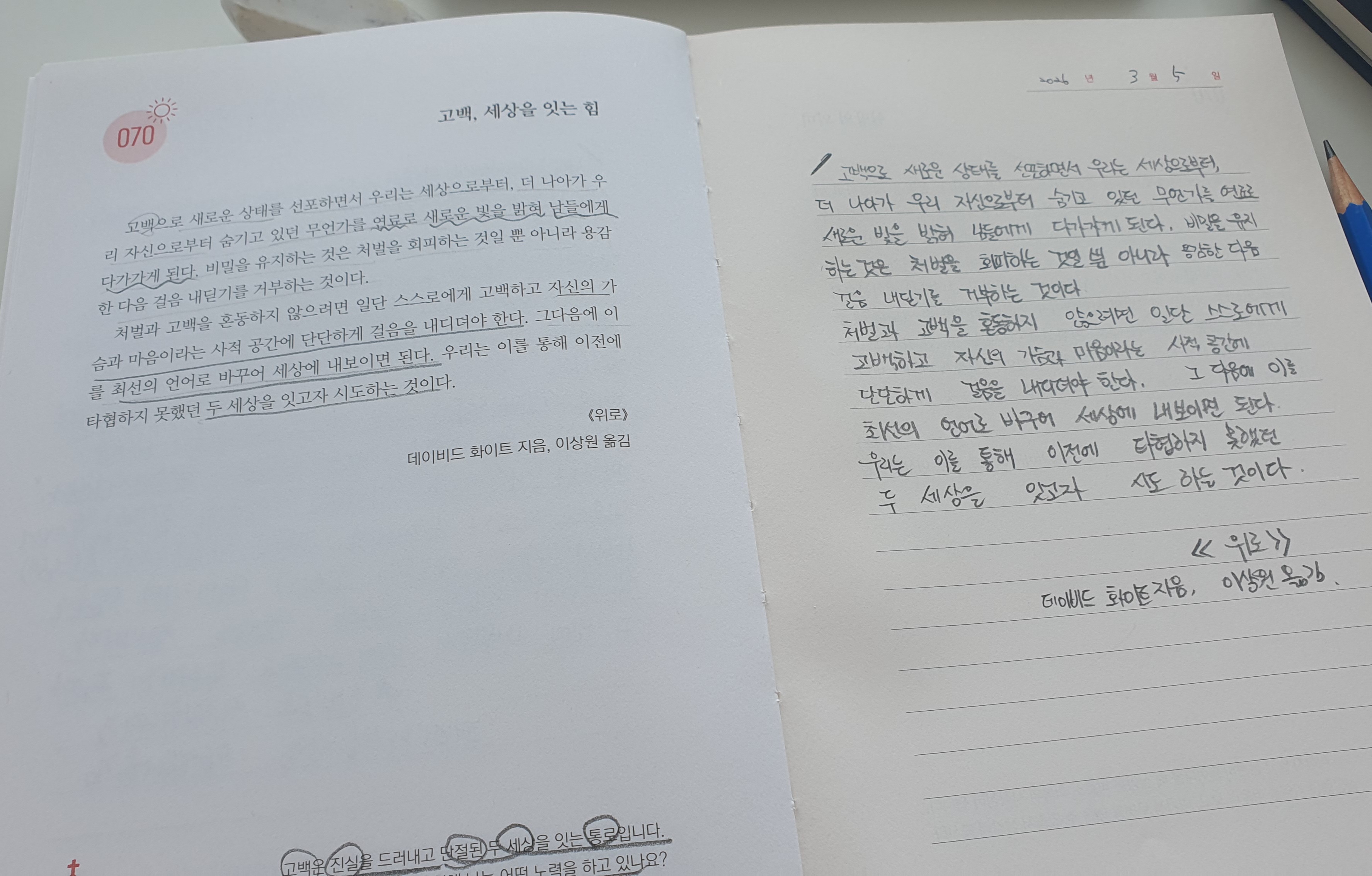 Day 70 고백, 세상을 잇는 힘