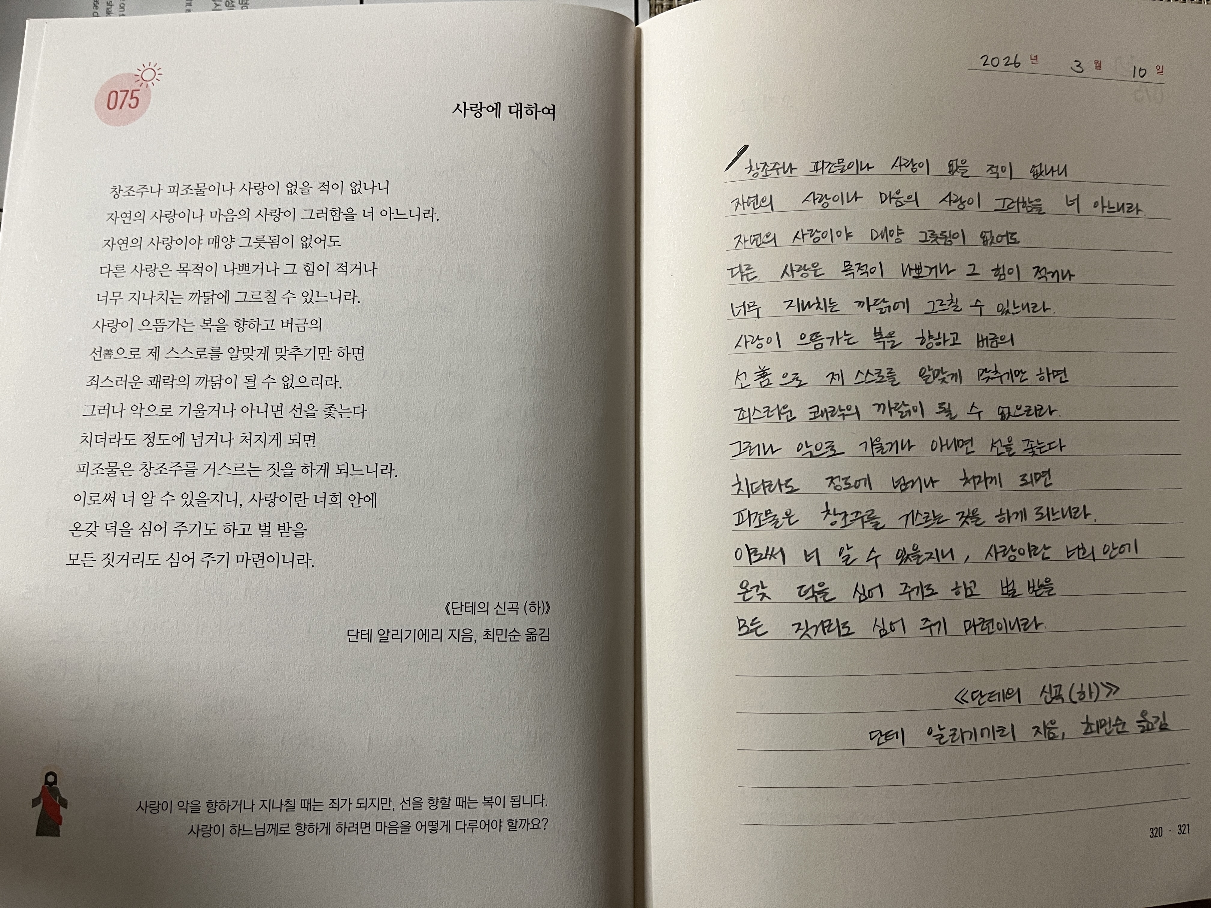 DAY 75 <사랑에 대하여> + <오직 그분>