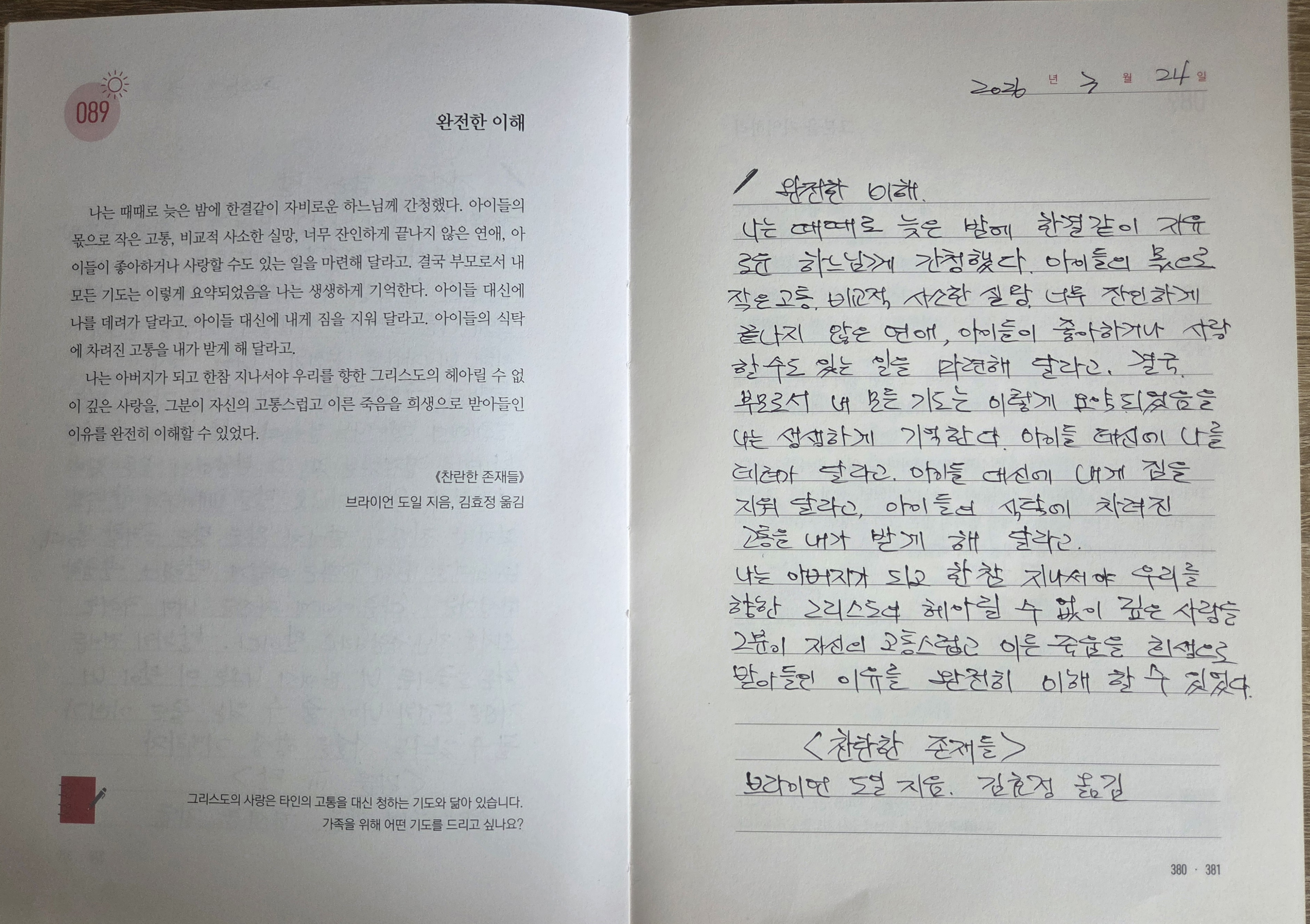전 아직 완전한 이해는 어려워도 더 가까워지려고 노력하고 있습니다. 그럼에도 불구하고 그 분은 항상 제 옆에서 저를 이해하고 사랑하고 지켜 주시고 계시겠지요. 감사드립니다.