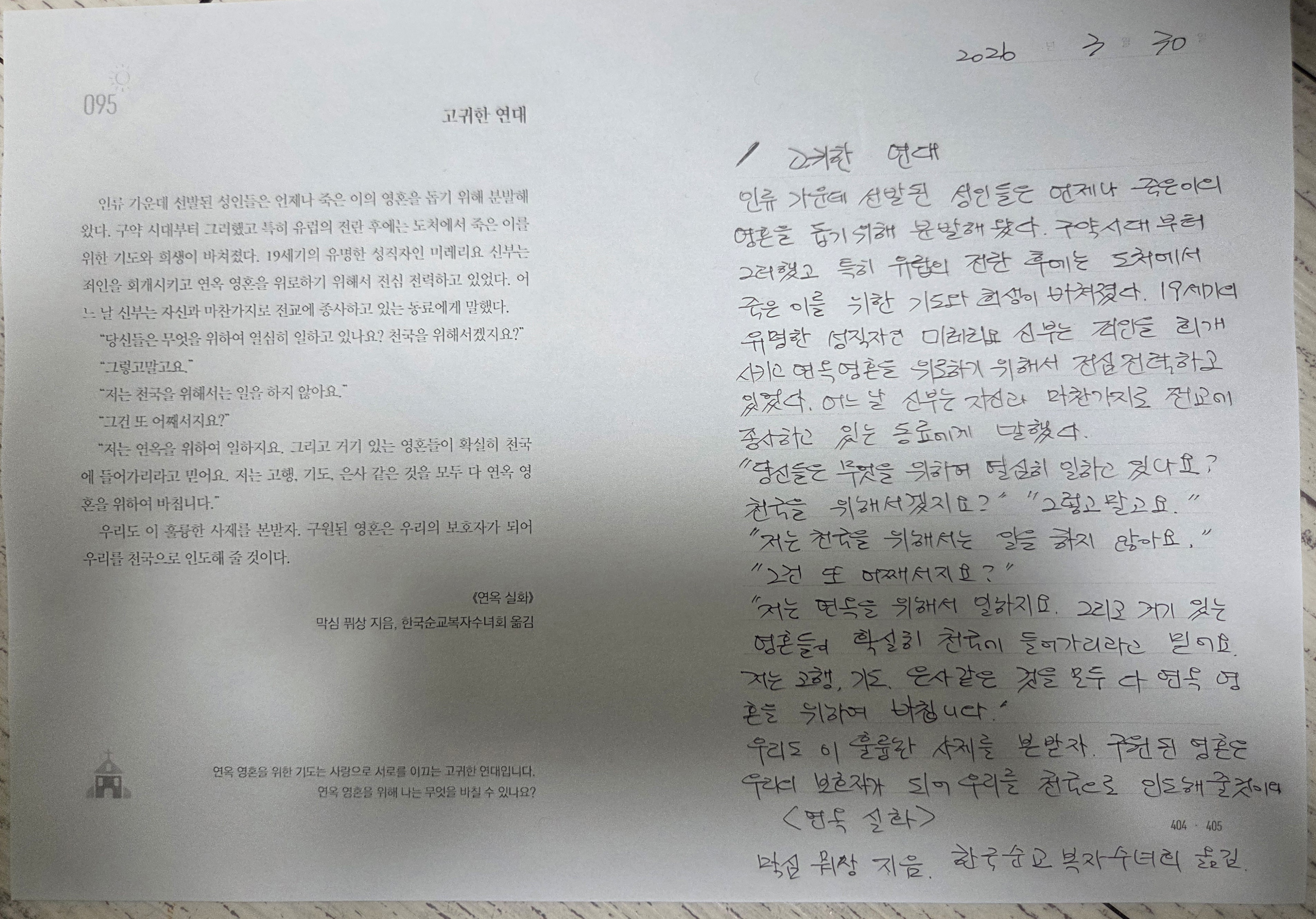 day 95 고귀한 연대/연옥 영혹을 위한 사랑