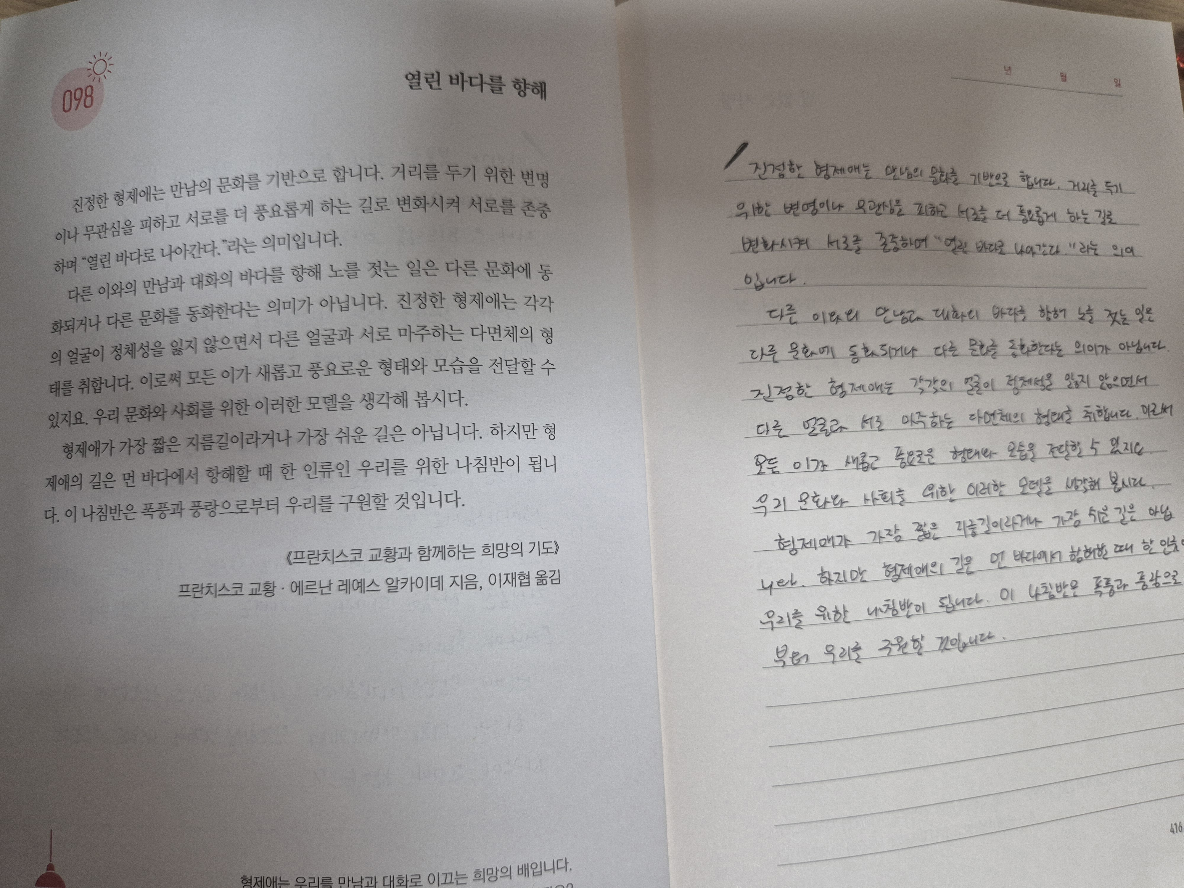Day 98 열린 바다를 향해, 말없는 사랑 <프란치스코교황과 함께하는 희망의 기도>