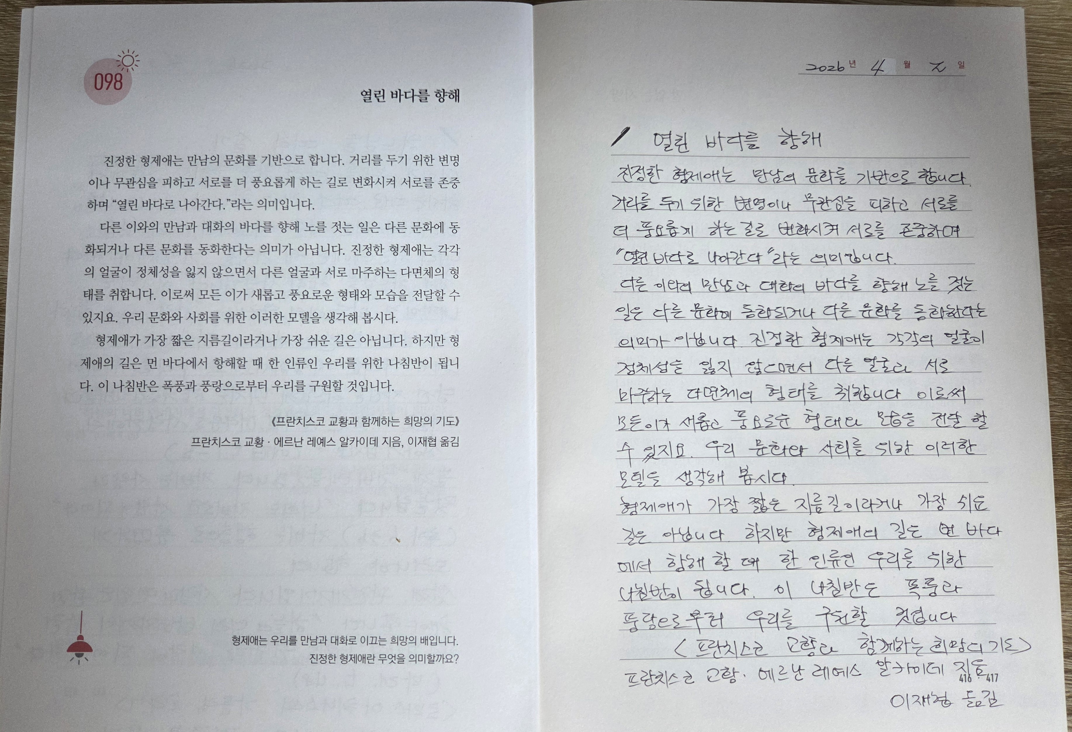 DAY 98 열린 바다를 향해/말 없는 사랑