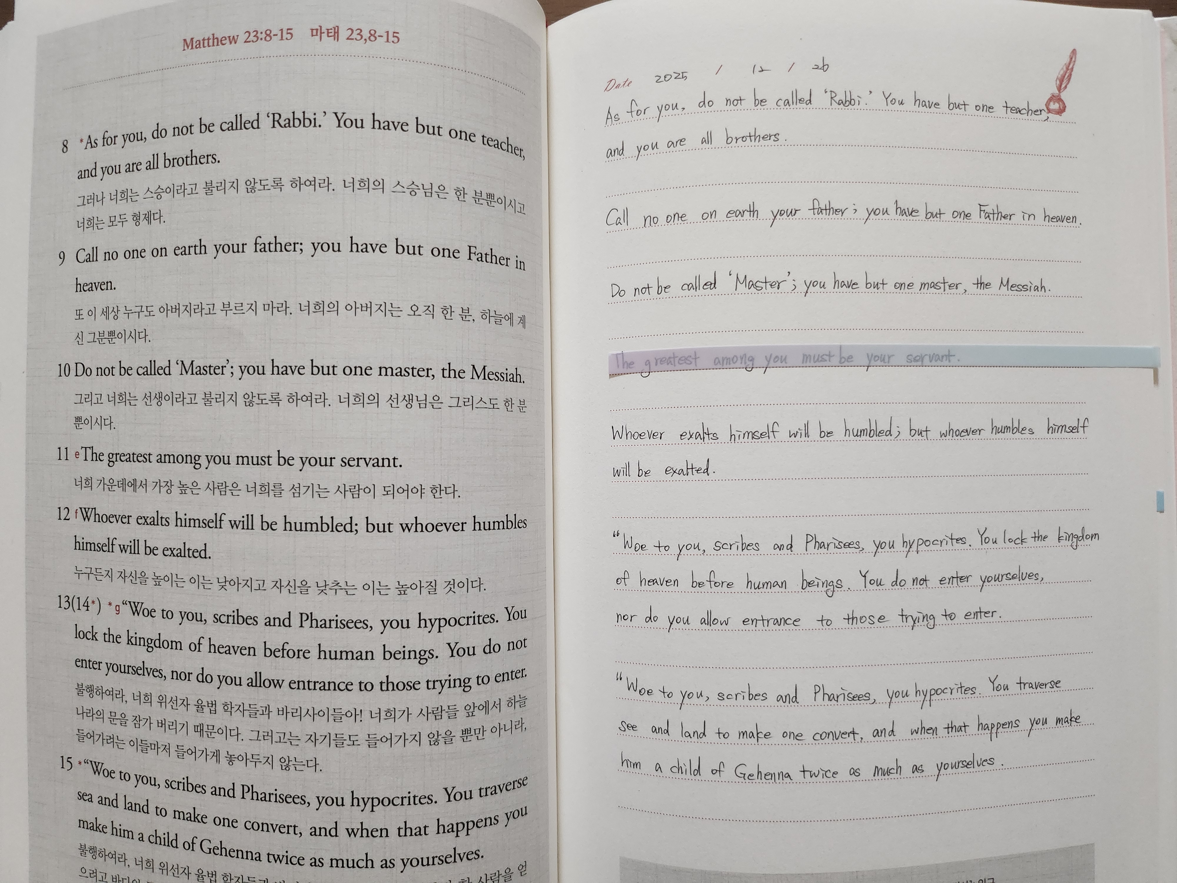너희 가운데에서 가장 높은 사람은 너희를 섬기는 사람이 되어야 한다.