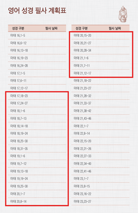 • 필사 계획표 기준 : 17,18-23 ~ 21,12-17