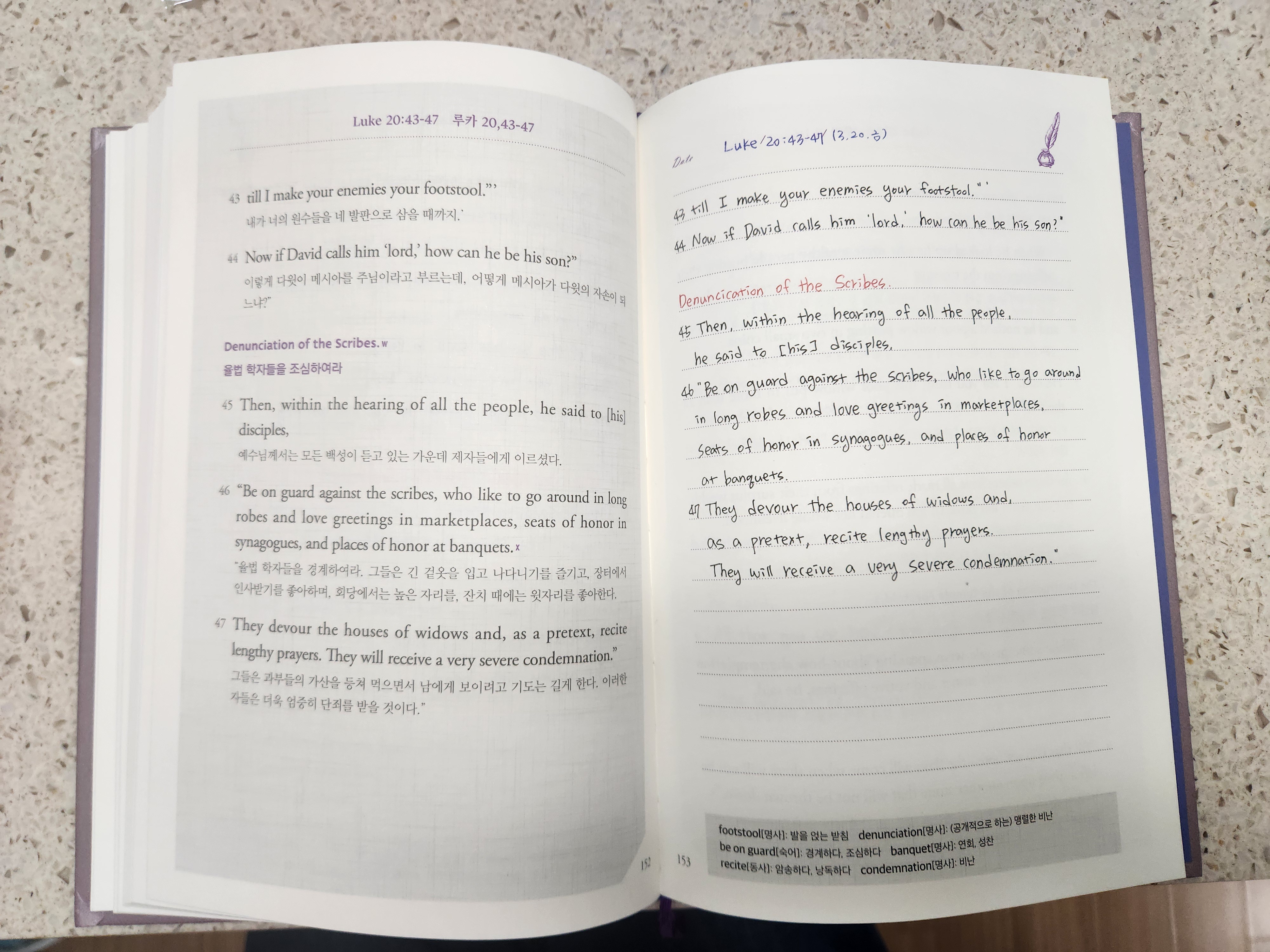 (그들은 긴 겉옷을 입고 나타나기를 즐기고, 장터에서 인사받기를 좋아하며, 회당에서는 높은 자리를, 잔치 때에는 윗자리를 좋아한다. 그들은 과부들의 가산을 등쳐 먹으면서 남에게 보이려고 기도는 길게 한다.)