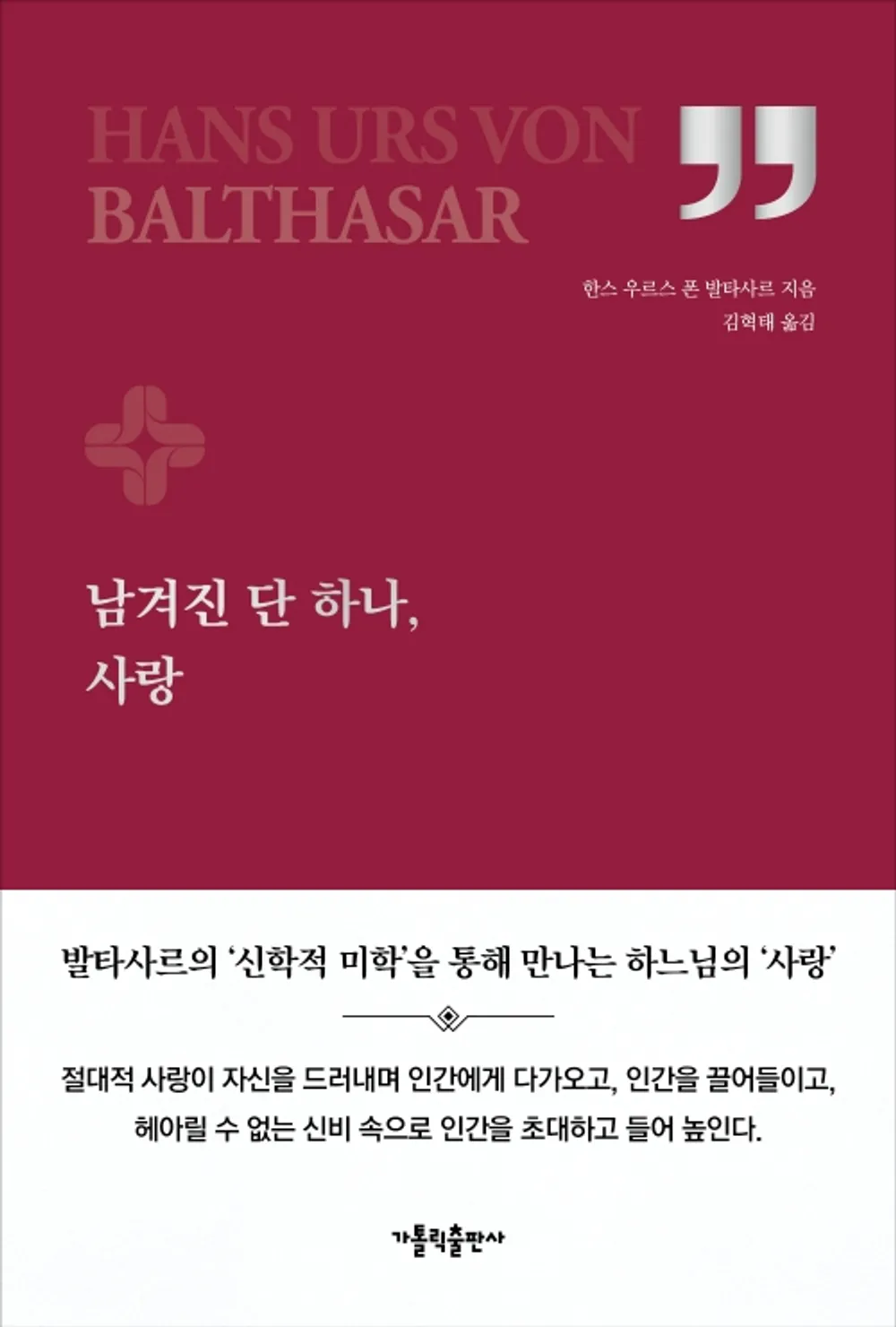 아무도 메마른 개념들로 이 신비를 해체하지 못하리라. 어떻게 하느님께서 더 이상 내 안에서 나의 죄를 보지 않으시고 그 죄를 짊어지시는 사랑하시는 아드님 안에서 보시는지를, 어떻게 하느님께서 그 죄를 수난의 사랑 가운데 변모하게 하시고, 찾아내시고, 내가 당신 아드님이 아프게 사랑하는 대상이기 때문에 나를 사랑하시는지를, 어떻게 그리되는지를 남김없이 설명할 수 없으리라. 그러나 사랑하시는 이로서 하느님께서 우리를 보시는 그대로가 우리가 존재하는 그대로다.