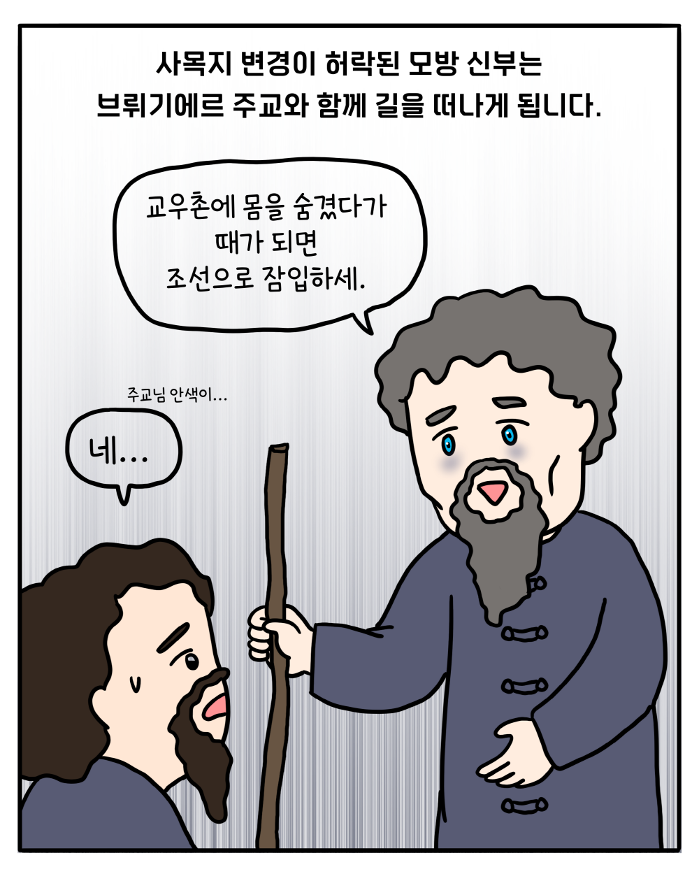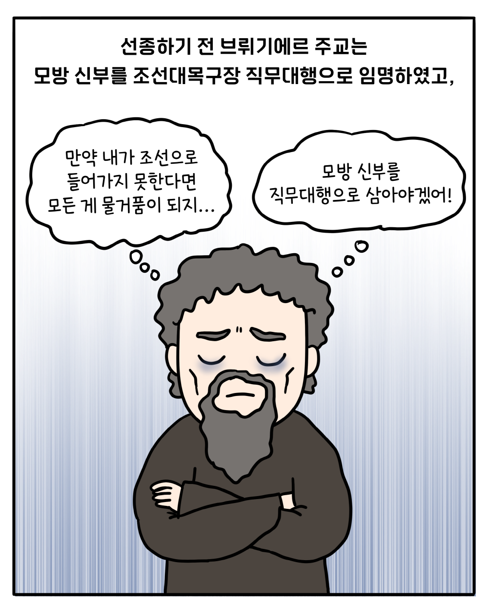 브뤼기에르 주교님의 선종으로 조선 교회는 또다시 목자를 잃을 위기에 처했습니다. 그러나 브뤼기에르 주교님을 따라 조선에 온 또 다른 사제가 있었으니, 그가 바로 피에르 모방 신부입니다.